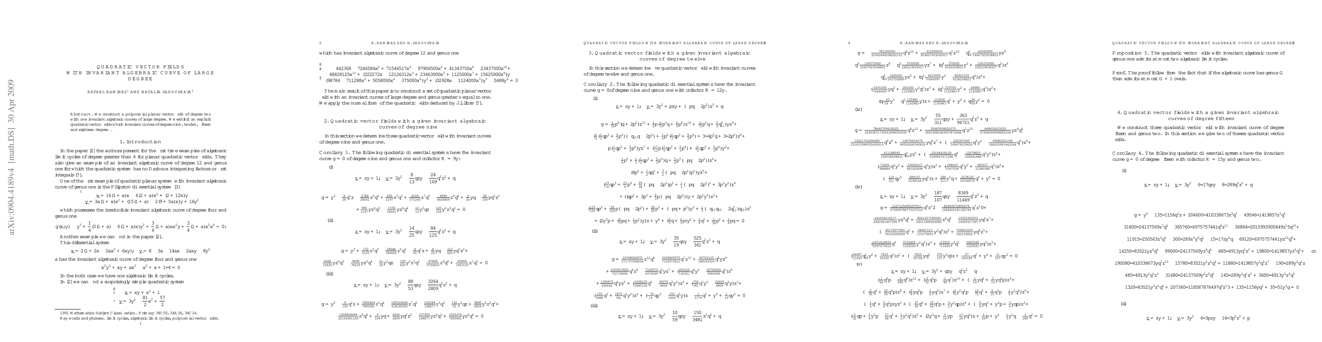We construct a polynomial planar vector field of degree two with one invariant algebraic curves of large degree. We exhibit an explicit quadratic vector fields which invariant curves of degree nine, twelve, fifteen and eighteen degree.