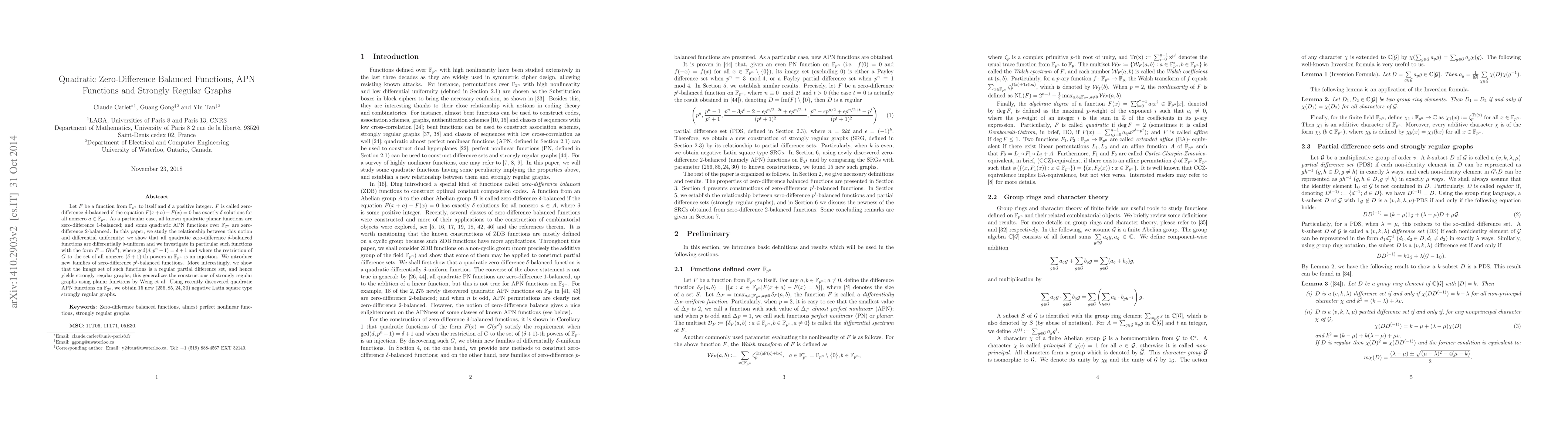 This paper explores quadratic zero-difference balanced functions, establishing their differential uniformity and introducing new families of such functions. It also demonstrates their application in constructing strongly regular graphs, yielding 15 new negative Latin square type strongly regular graphs from quadratic APN functions.