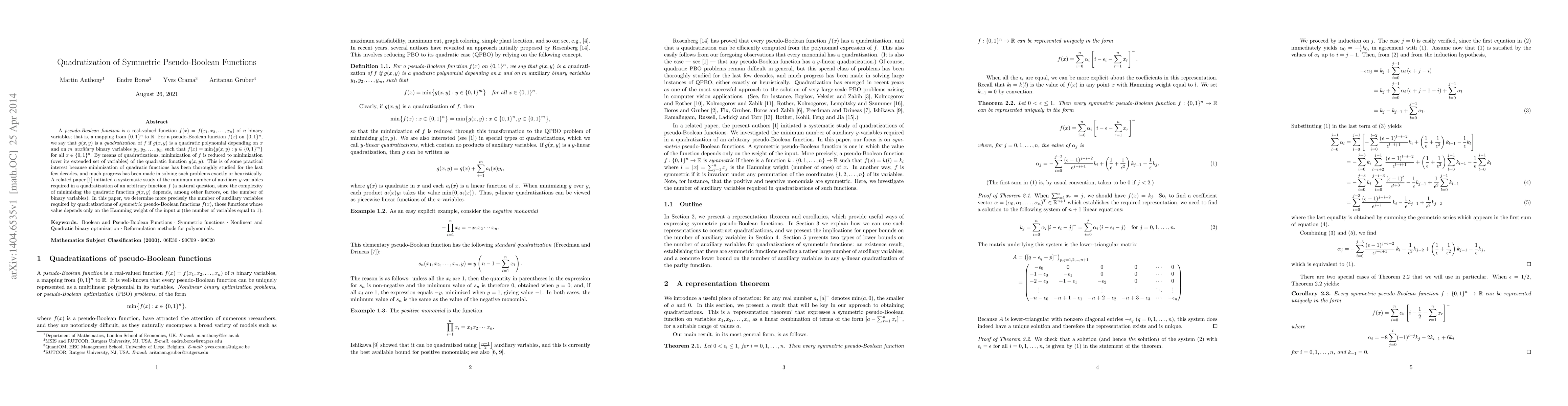 This paper investigates the quadratization of symmetric pseudo-Boolean functions, focusing on reducing their minimization to that of quadratic polynomials. It determines the precise number of auxiliary variables required for such quadratizations, which is crucial for the complexity of solving these minimization problems.
