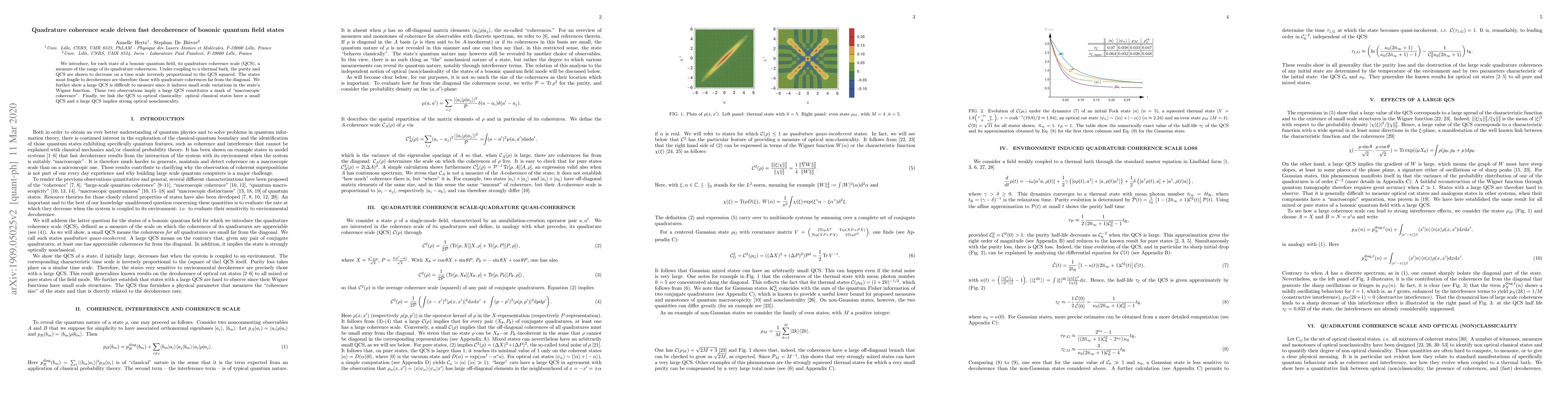 A research paper introduces a measure of quadrature coherence scale to quantify bosonic quantum field states, finding that large scales indicate macroscopic coherence and strong optical nonclassicality.
