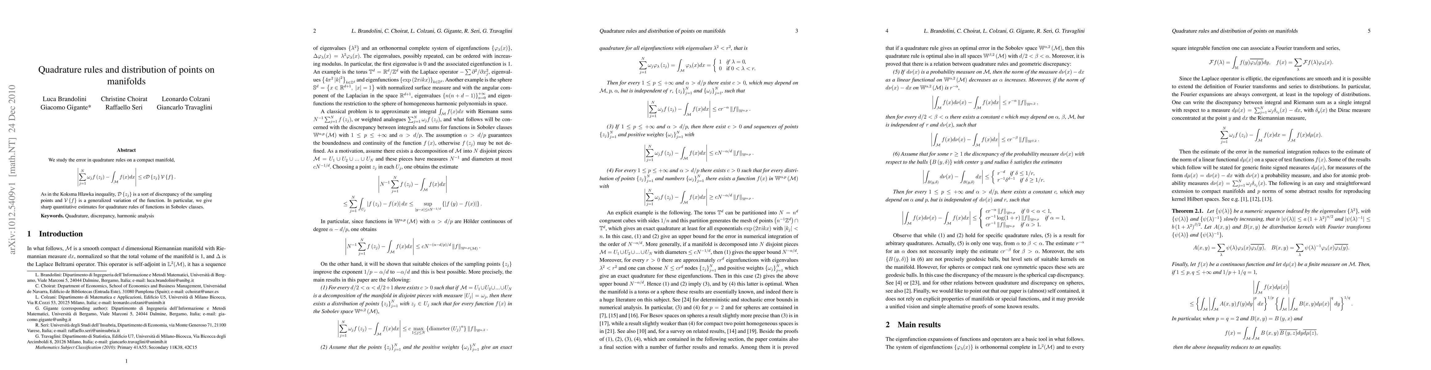 This paper investigates the error in quadrature rules on compact manifolds, focusing on the discrepancy between sampling points and the generalized variation of functions. It provides precise quantitative estimates for quadrature rules applied to functions in Sobolev classes.