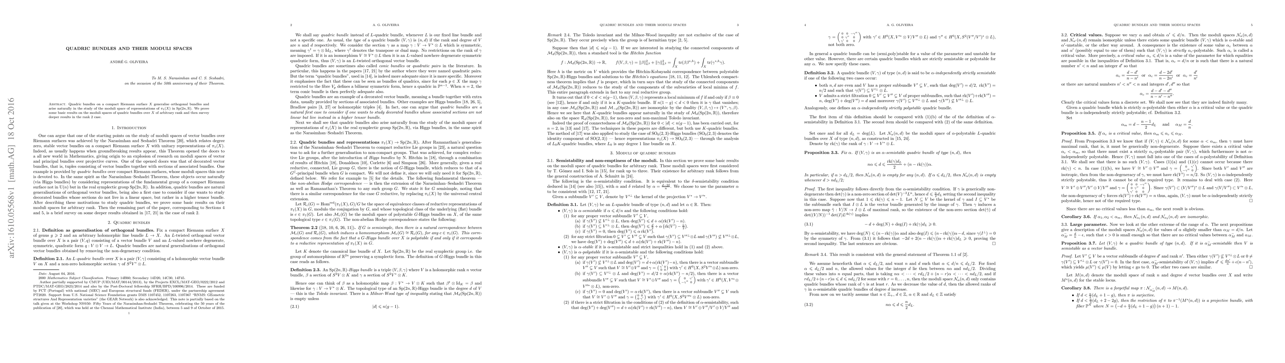 Quadric bundles on a compact Riemann surface X generalise orthogonal bundles and arise naturally in the study of the moduli space of representations of $\pi_1(X)$ in Sp(2n,R). We prove some basic results on the moduli spaces of quadric bundles over X of arbitrary rank and then survey deeper results in the rank 2 case.