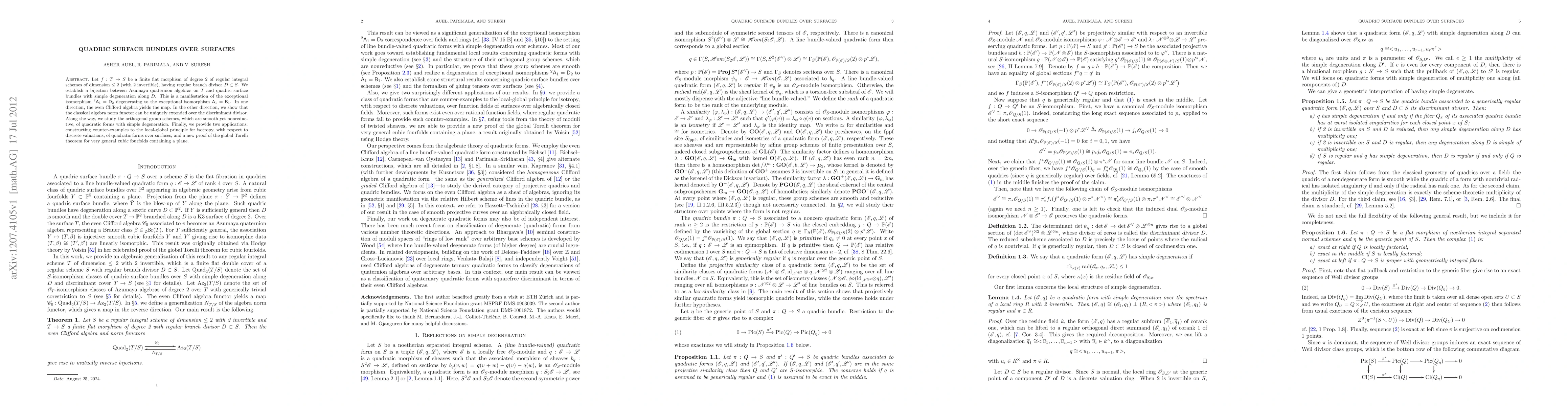Let T -> S be a finite flat morphism of degree two between regular integral schemes of dimension at most two (and with 2 invertible), having regular branch divisor D. We establish a bijection between Azumaya quaternion algebras on T and quadric surface bundles over S with simple degeneration along D. This is a manifestation of the exceptional isomorphism A_1^2 = D_2 degenerating to the exceptional isomorphism A_1 = B_1. In one direction, the even Clifford algebra yields the map. In the other direction, we show that the classical algebra norm functor can be uniquely extended over the discriminant divisor. Along the way, we study the orthogonal group schemes, which are smooth yet nonreductive, of quadratic forms with simple degeneration. Finally, we provide two surprising applications: constructing counter-examples to the local-global principle for isotropy, with respect to discrete valuations, of quadratic forms over surfaces; and a new proof of the global Torelli theorem for very general cubic fourfolds containing a plane.