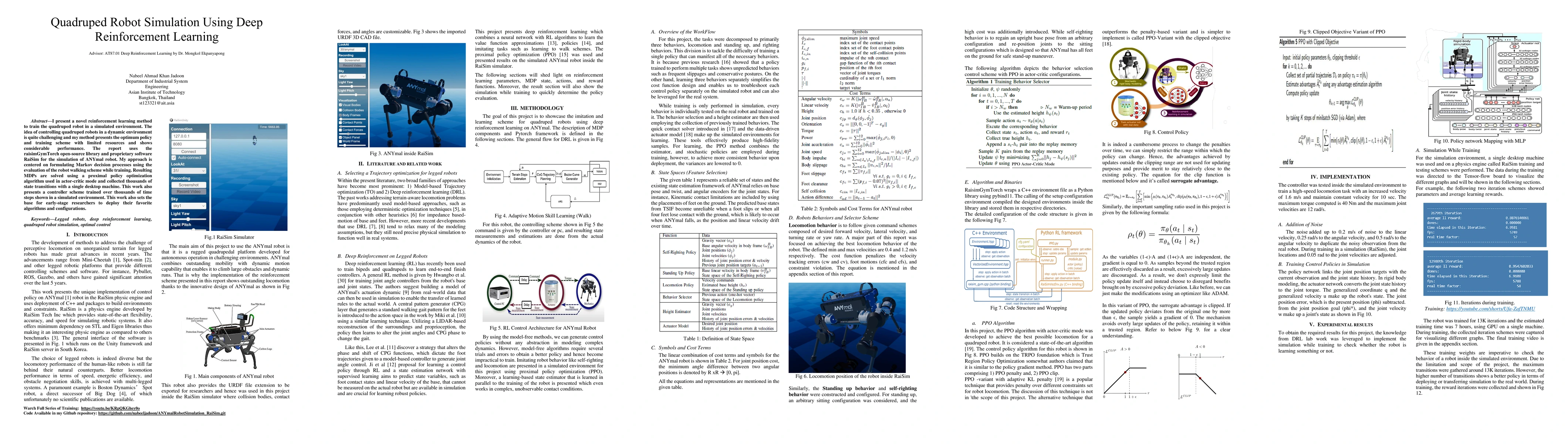 Summary: This research employs deep reinforcement learning to train a quadruped robot in a simulated environment, achieving optimal locomotion policies using proximal policy optimization. The study utilizes the ANYmal robot within the RaiSim simulation framework, providing a resource-efficient training scheme and a foundation for further research.