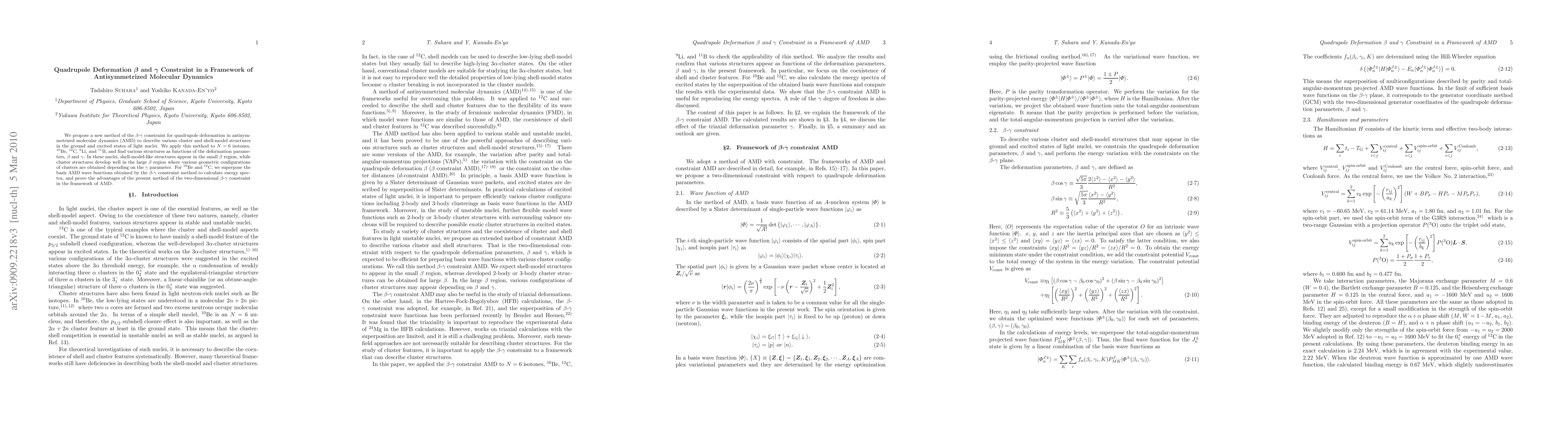 This paper introduces a new $\beta$-$\gamma$ constraint method in antisymmetrized molecular dynamics to study quadrupole deformation in light nuclei, revealing shell-model-like structures at small $\beta$ and cluster configurations at large $\beta$ with varying $\gamma$ parameters. The method is validated by analyzing N=6 isotones and demonstrating its advantages in energy spectrum calculations.
