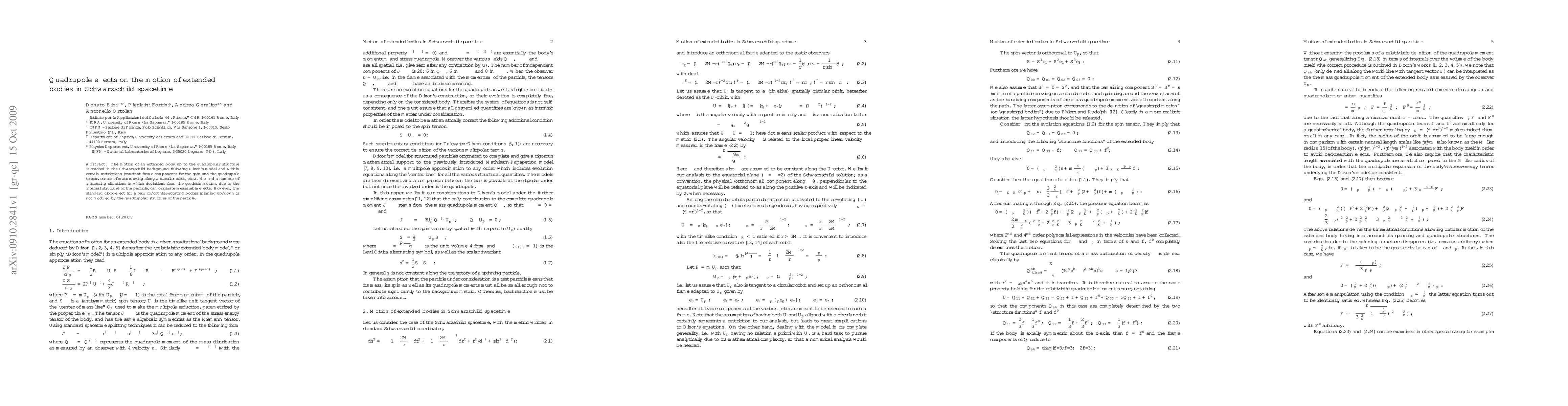 This paper investigates the motion of an extended body considering its quadrupolar structure in Schwarzschild spacetime, revealing measurable effects from internal structure deviations from geodesic motion. Despite these effects, the quadrupolar structure does not alter the standard clock-effect for co- and counter-rotating bodies.