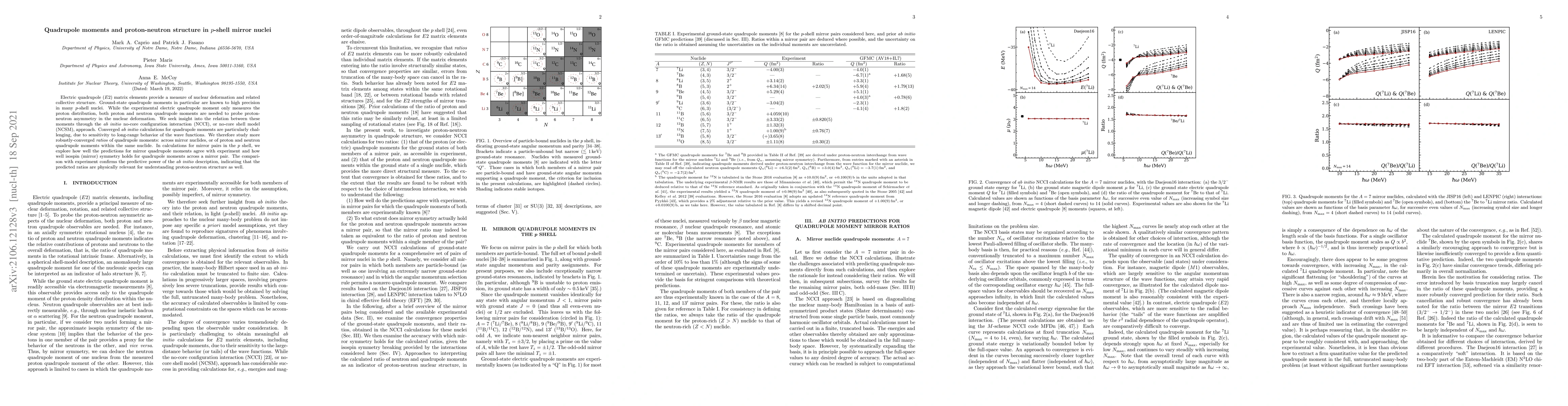 This paper investigates electric quadrupole moments in p-shell mirror nuclei using the ab initio no-core configuration interaction (NCCI) approach, focusing on the proton-neutron structure and asymmetry. It examines the agreement between theoretical predictions and experimental data, particularly exploring the robustness of mirror symmetry in quadrupole moments.
