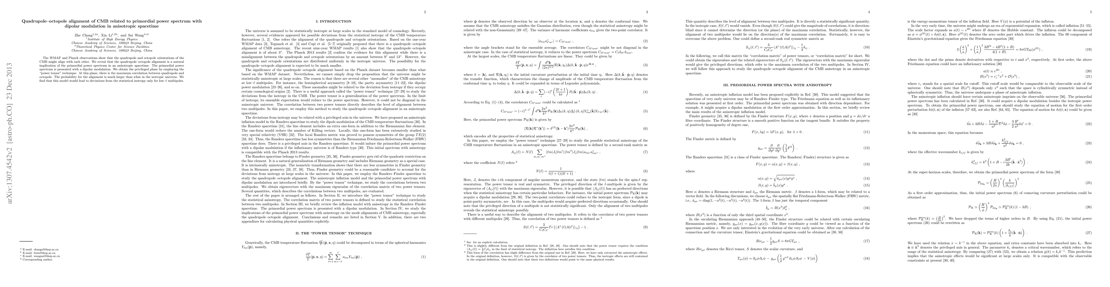 This paper explores the alignment between the CMB's quadrupole and octopole moments, revealing it as a consequence of a primordial power spectrum with dipolar modulation in an anisotropic spacetime. The "power tensor" technique identifies a privileged plane where the correlation between these moments is maximized, indicating a significantly higher probability of alignment compared to an isotropic universe.