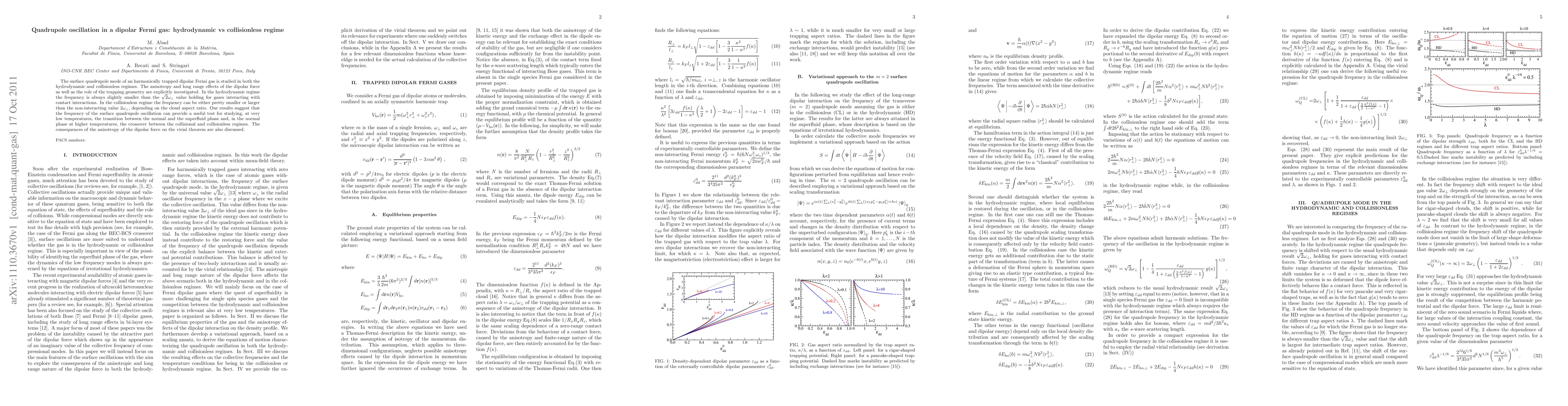 The paper presents a detailed analysis of the quadrupole oscillation mode in dipolar Fermi gases, deriving expressions for frequencies in both hydrodynamic and collisionless regimes using a variational approach.