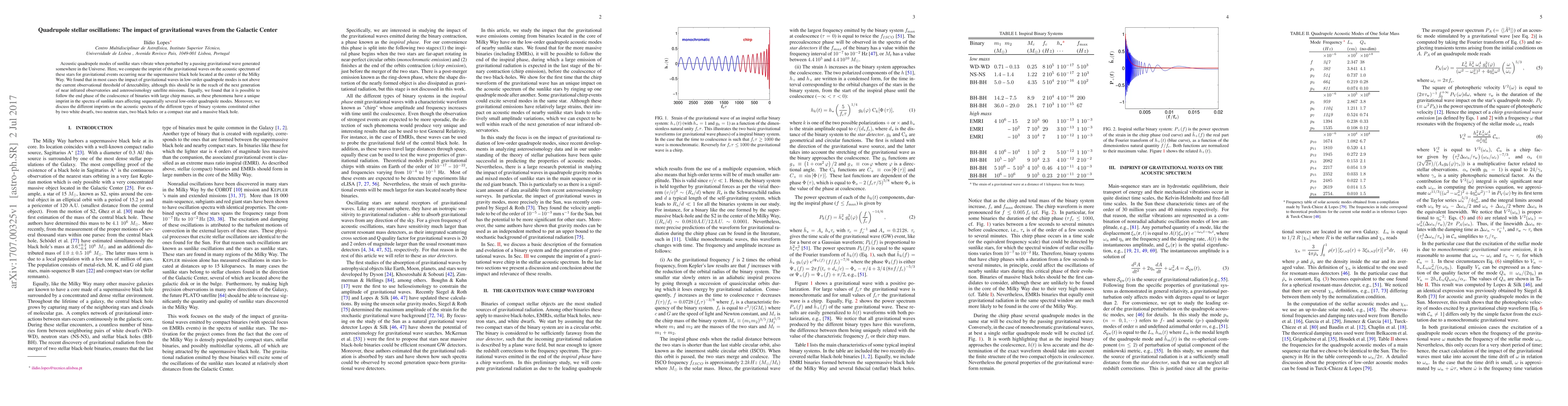 This paper investigates how gravitational waves from the Galactic Center affect the acoustic quadrupole modes of sunlike stars, finding that current detection thresholds are not reached, but future observatories may. It also highlights the unique spectral signatures of different binary systems in these modes.