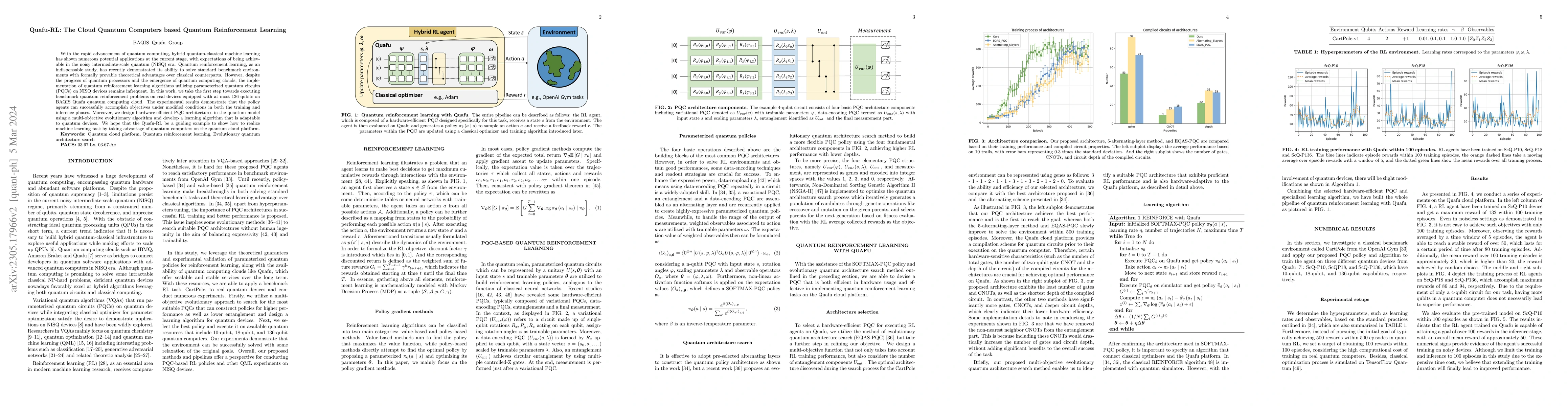This research introduces Quafu-RL, an initiative to execute quantum reinforcement learning on real quantum computing cloud devices, specifically the BAQIS Quafu quantum computing cloud. The study highlights the use of parameterized quantum circuits (PQCs) on noisy intermediate-scale quantum (NISQ) devices, achieving slightly relaxed goals during training and inference, and demonstrates the potential of hybrid quantum-classical machine learning.