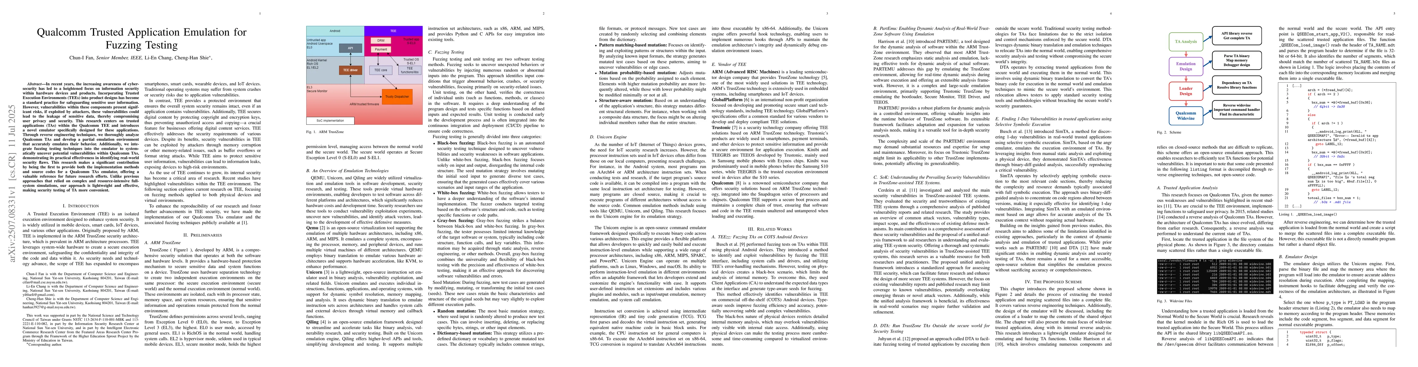 In recent years, the increasing awareness of cybersecurity has led to a heightened focus on information security within hardware devices and products. Incorporating Trusted Execution Environments (TEEs) into product designs has become a standard practice for safeguarding sensitive user information. However, vulnerabilities within these components present significant risks, if exploited by attackers, these vulnerabilities could lead to the leakage of sensitive data, thereby compromising user privacy and security. This research centers on trusted applications (TAs) within the Qualcomm TEE and introduces a novel emulator specifically designed for these applications. Through reverse engineering techniques, we thoroughly analyze Qualcomm TAs and develop a partial emulation environment that accurately emulates their behavior. Additionally, we integrate fuzzing testing techniques into the emulator to systematically uncover potential vulnerabilities within Qualcomm TAs, demonstrating its practical effectiveness in identifying real-world security flaws. This research makes a significant contribution by being the first to provide both the implementation methods and source codes for a Qualcomm TAs emulator, offering a valuable reference for future research efforts. Unlike previous approaches that relied on complex and resource-intensive full-system simulations, our approach is lightweight and effective, making security testing of TA more convenient.