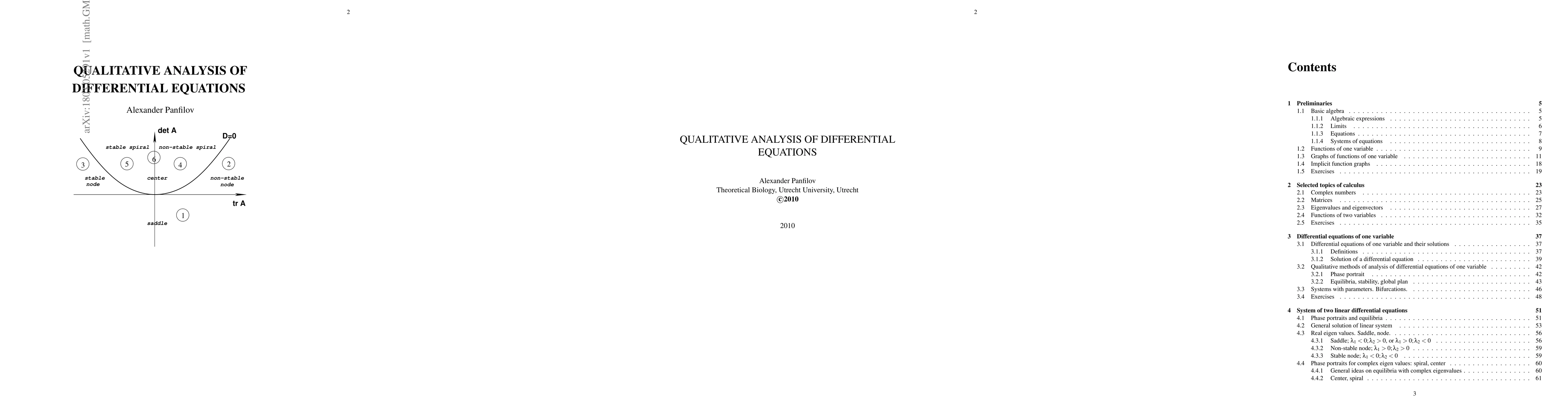 Here I introduce basic methods of qualitative analysis of differential equations used in mathematical biology for people with minimal mathematical background.