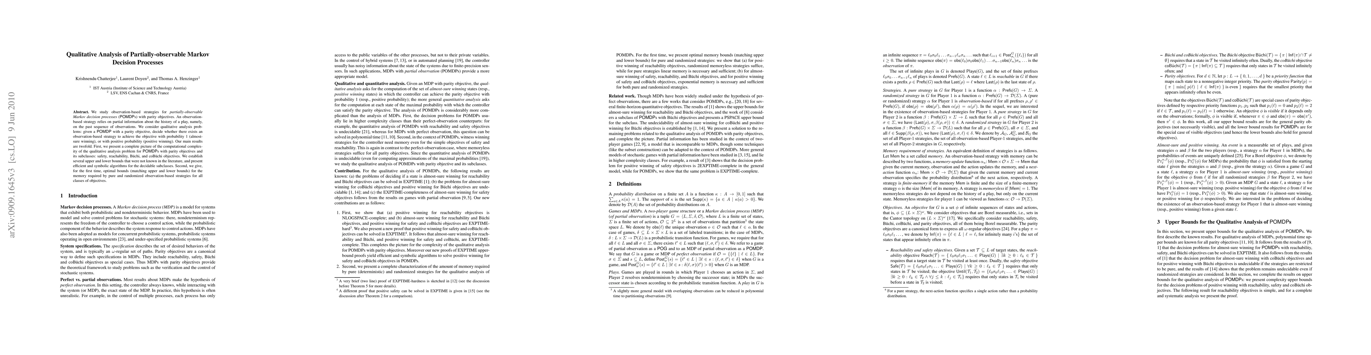 This paper investigates the computational complexity and memory requirements for qualitative analysis of partially-observable Markov decision processes (POMDPs) with omega-regular objectives, focusing on observation-based strategies. It establishes new upper and lower bounds on the complexity of analyzing POMDPs with parity objectives and provides optimal bounds for the memory needed by such strategies.