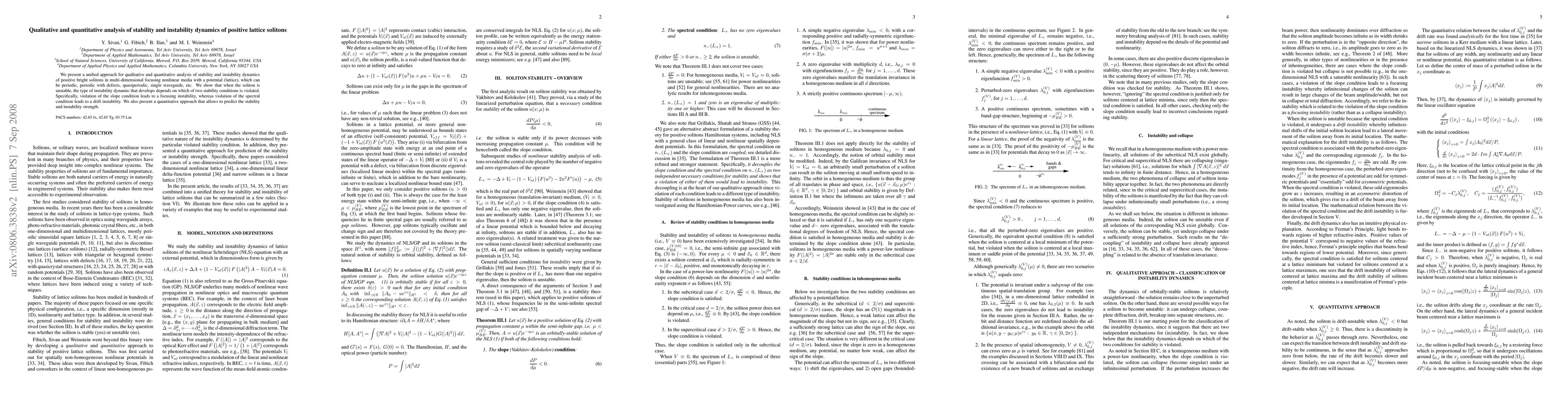 This paper provides a comprehensive analysis of the stability and instability dynamics of positive bright solitons in various lattice structures. It identifies two types of instability: amplitude instability from slope condition violation and drift instability from spectral condition violation, and offers a quantitative method for predicting these instabilities.