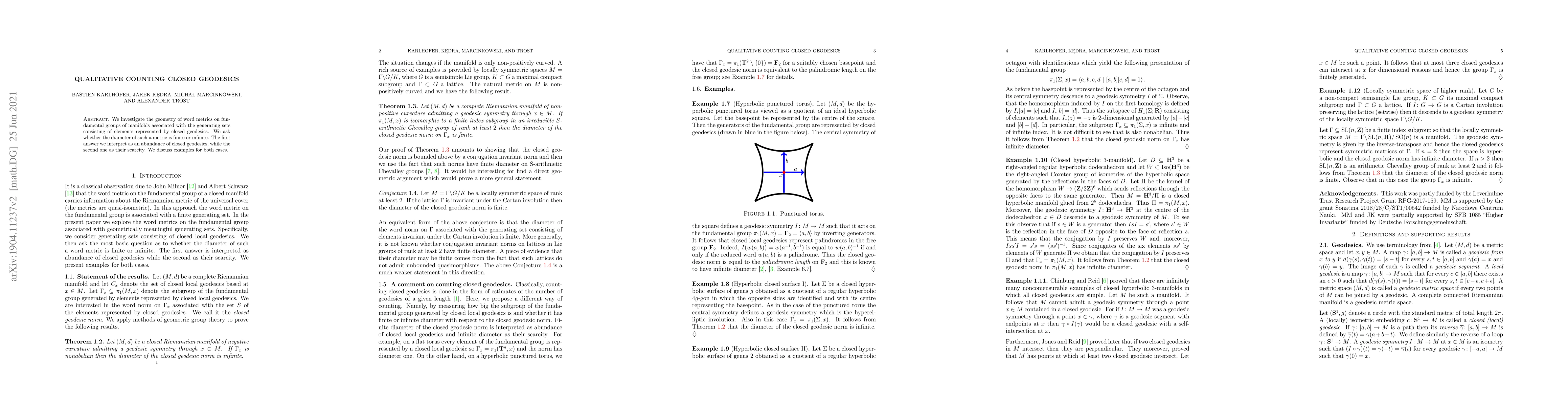 This paper explores the geometry of word metrics on the fundamental groups of manifolds using generating sets defined by closed geodesics, investigating whether the diameter of these metrics is finite (indicating many closed geodesics) or infinite (indicating few). It provides examples illustrating both scenarios.