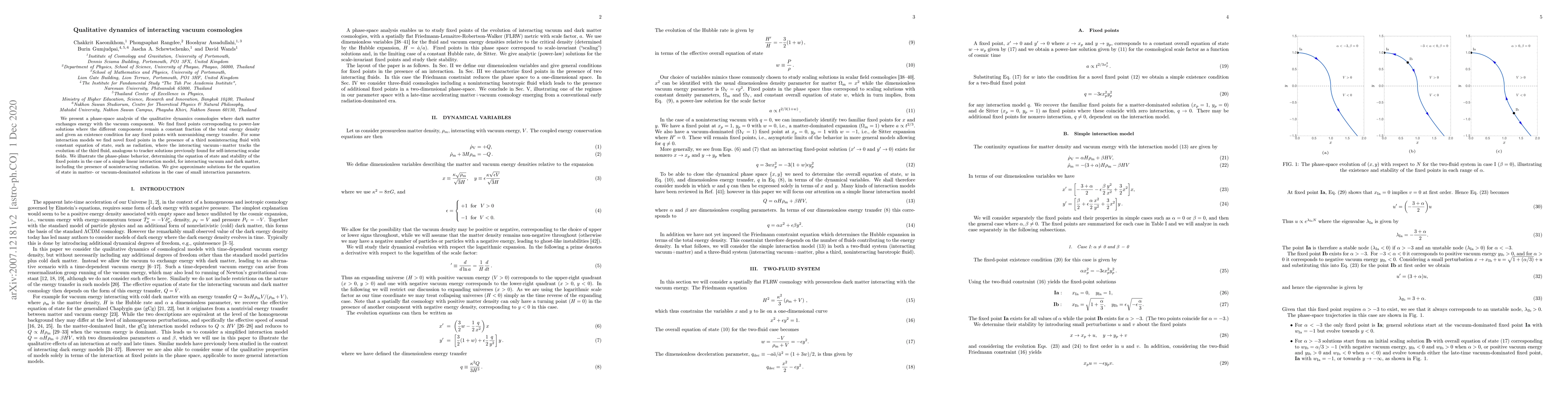 We present a phase-space analysis of the qualitative dynamics cosmologies where dark matter exchanges energy with the vacuum component. We find fixed points corresponding to power-law solutions where the different components remain a constant fraction of the total energy density and given an existence condition for any fixed points with nonvanishing energy transfer. For some interaction models we find novel fixed points in the presence of a third noninteracting fluid with constant equation of state, such as radiation, where the interacting vacuum+matter tracks the evolution of the third fluid, analogous to tracker solutions previously found for self-interacting scalar fields. We illustrate the phase-plane behavior, determining the equation of state and stability of the fixed points in the case of a simple linear interaction model, for interacting vacuum and dark matter, including the presence of noninteracting radiation. We give approximate solutions for the equation of state in matter- or vacuum-dominated solutions in the case of small interaction parameters.
