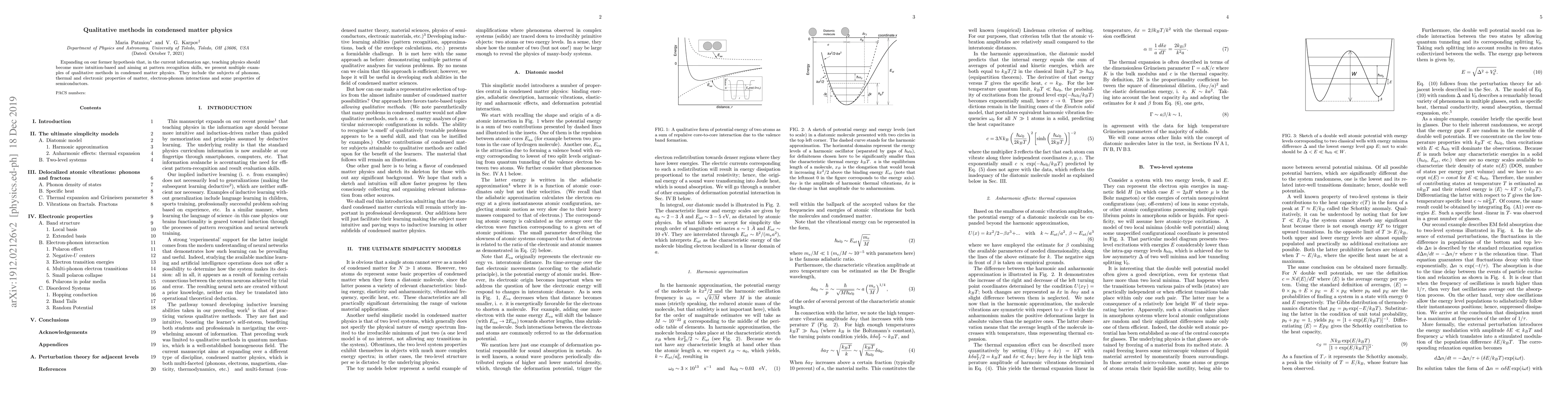 Expanding on our former hypothesis that, in the current information age, teaching physics should become more intuition-based and aiming at pattern recognition skills, we present multiple examples of qualitative methods in condensed matter physics. They include the subjects of phonons, thermal and electronic properties of matter, electron-phonon interactions and some properties of semiconductors.