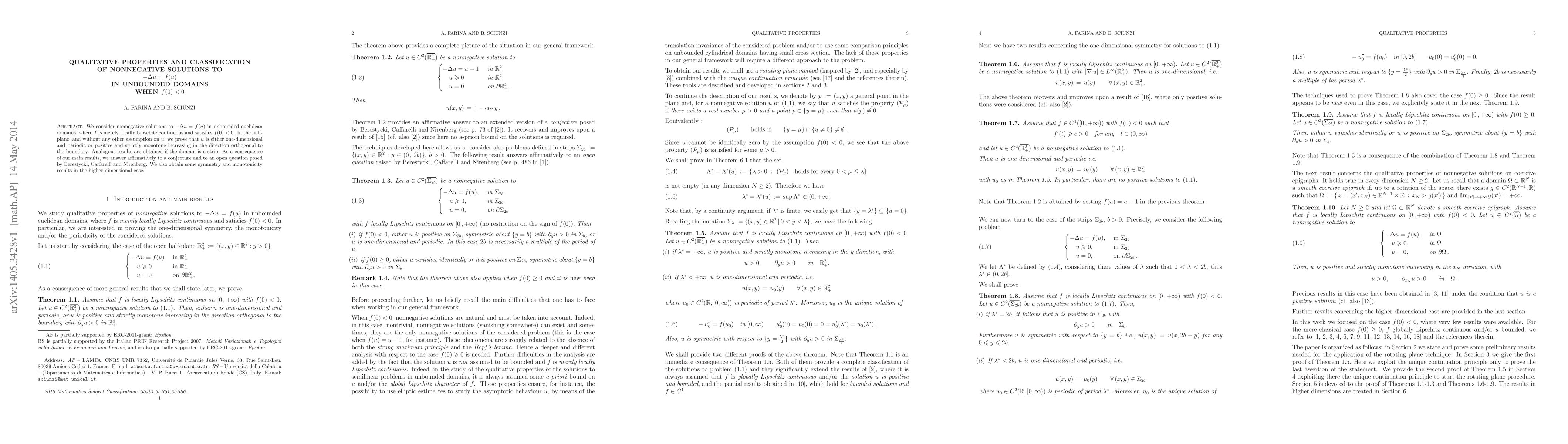 This paper classifies nonnegative solutions to $- abla^2 u = f(u)$ in unbounded domains with $f(0) < 0$, proving they are either periodic or strictly monotone increasing, resolving conjectures and open questions.
