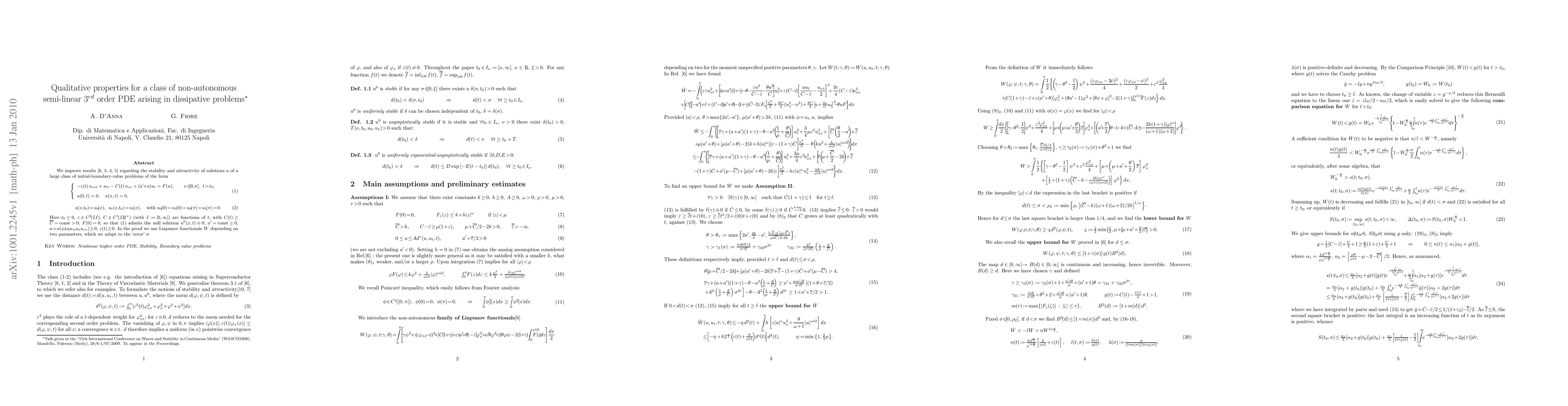 We improve results regarding the stability and attractivity of solutions $u$ of a large class of initial-boundary-value problems characterized by a semi-linear third order equation which may contain time-dependent coefficients. In the proof we use Liapunov functionals $W$ depending on two parameters, which we adapt to the 'error' $\sigma$.