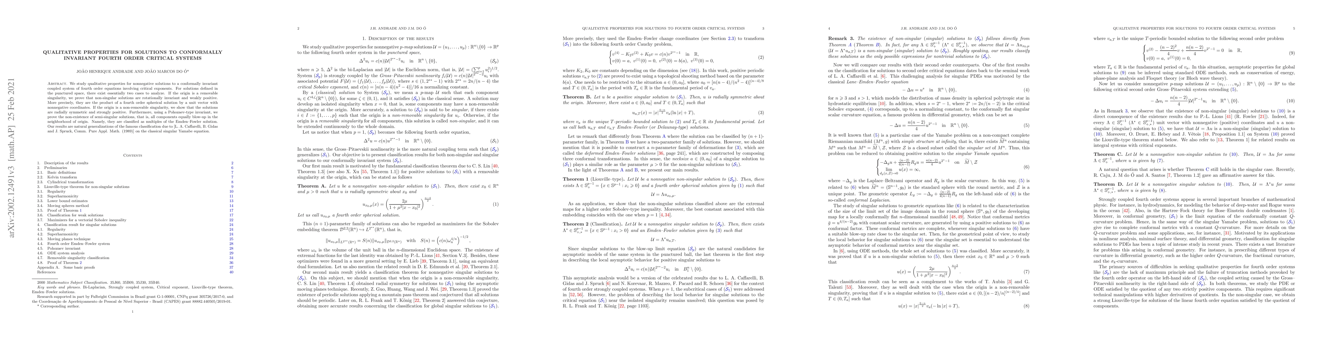 This paper investigates qualitative properties of nonnegative solutions to a conformally invariant system of fourth-order equations with critical exponents. It classifies solutions based on the nature of singularities at the origin, proving rotational invariance and positivity for removable singularities, and radial symmetry and strong positivity for non-removable singularities.