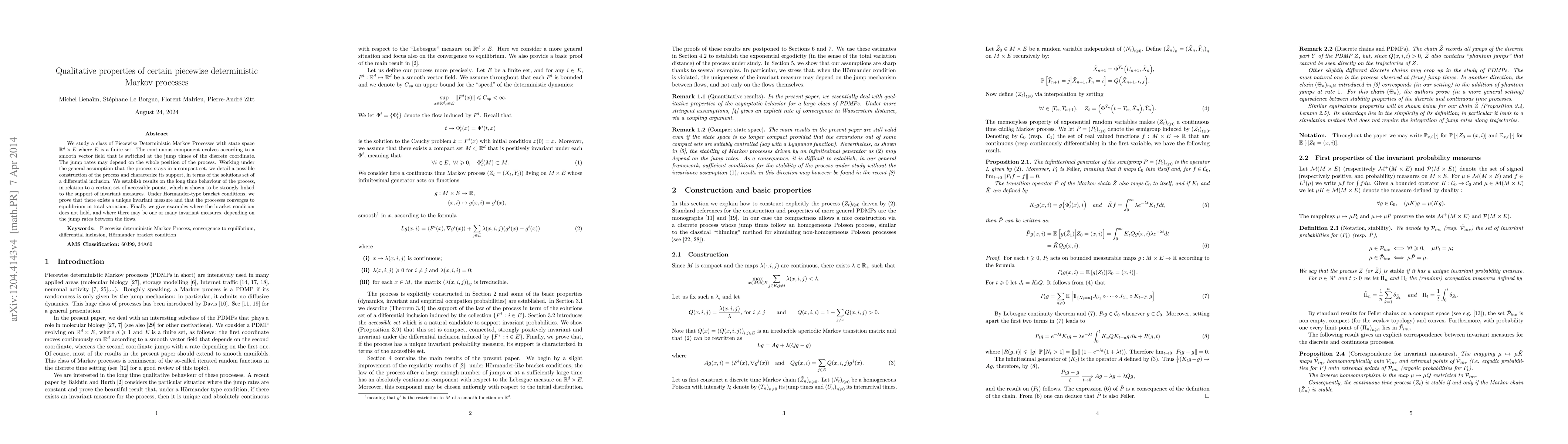This paper investigates a class of Piecewise Deterministic Markov Processes in Rd x E, where the continuous component follows a smooth vector field and discrete jumps depend on the entire position. It establishes the existence of a unique invariant measure under H\"ormander-type conditions and explores scenarios where multiple invariant measures may exist.