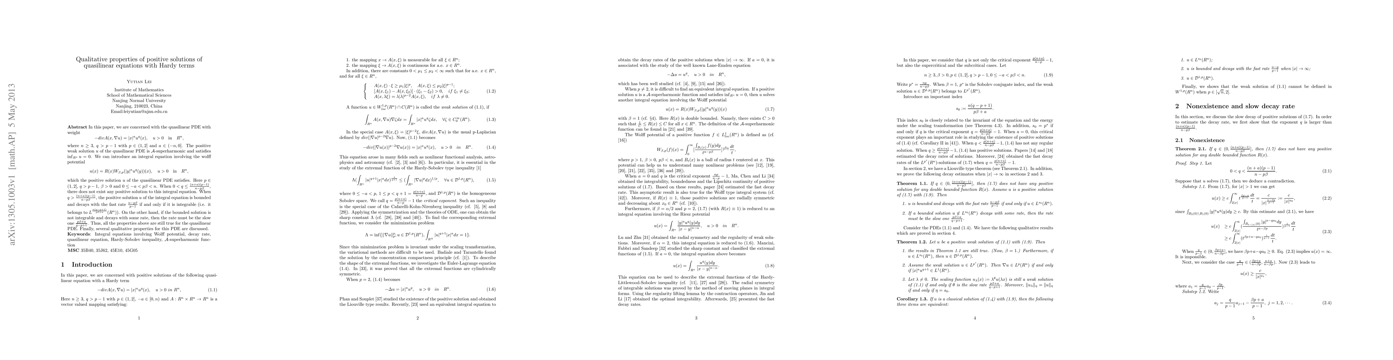 Researchers studied quasilinear PDEs with Hardy terms, finding that positive solutions can satisfy specific decay rates depending on the equation's parameters, offering insights into their qualitative properties.