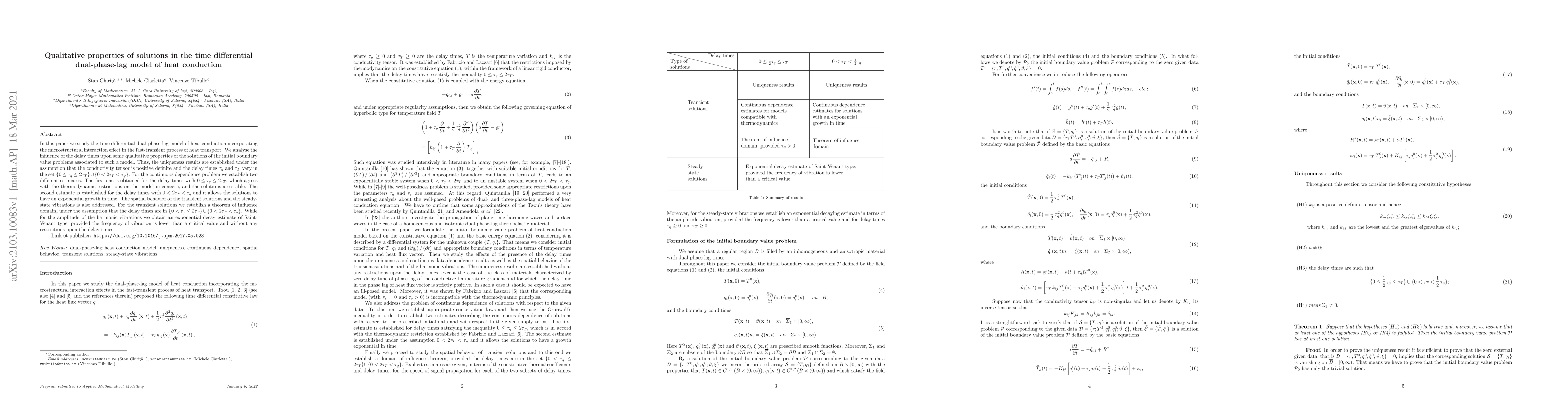 In this paper we study the time differential dual-phase-lag model of heat conduction incorporating the microstructural interaction effect in the fast-transient process of heat transport. We analyse the influence of the delay times upon some qualitative properties of the solutions of the initial boundary value problems associated to such a model. Thus, the uniqueness results are established under the assumption that the conductivity tensor is positive definite and the delay times $\tau_q$ and $\tau_T$ vary in the set $\{0\leq \tau_q\leq 2\tau_T\}\cup \{0<2\tau_T< \tau_q\}$. For the continuous dependence problem we establish two different estimates. The first one is obtained for the delay times with $0\leq \tau_q \leq 2\tau_T$, which agrees with the thermodynamic restrictions on the model in concern, and the solutions are stable. The second estimate is established for the delay times with $0<2\tau_T< \tau_q$ and it allows the solutions to have an exponential growth in time. The spatial behavior of the transient solutions and the steady-state vibrations is also addressed. For the transient solutions we establish a theorem of influence domain, under the assumption that the delay times are in $\left\{0<\tau_q\leq 2\tau_T\right\}\cup \left\{0<2\tau_T<\tau_q\right\}$. While for the amplitude of the harmonic vibrations we obtain an exponential decay estimate of Saint-Venant type, provided the frequency of vibration is lower than a critical value and without any restrictions upon the delay times.