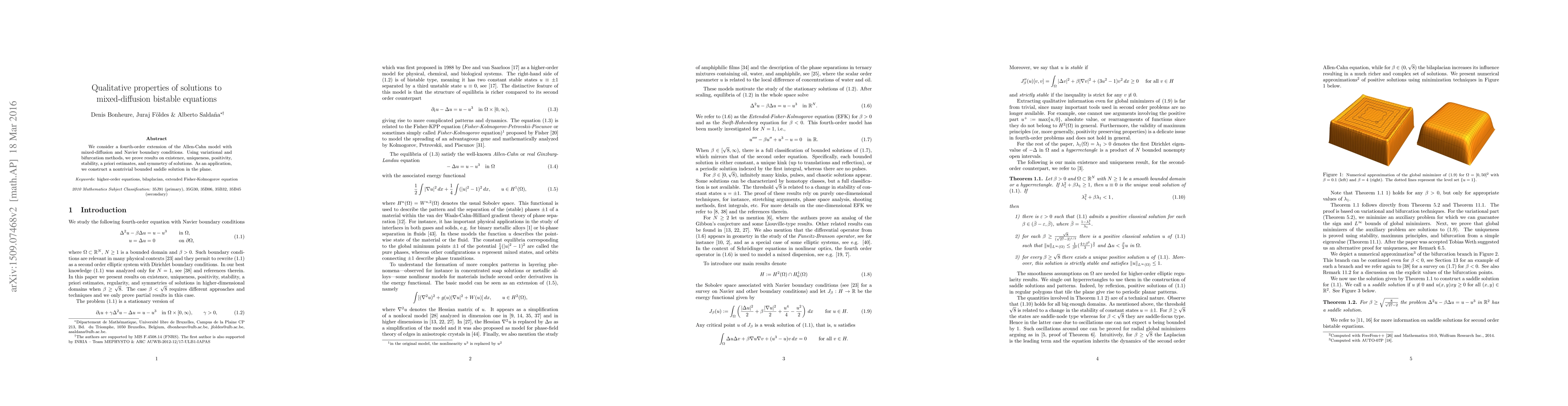 We consider a fourth-order extension of the Allen-Cahn model with mixed-diffusion and Navier boundary conditions. Using variational and bifurcation methods, we prove results on existence, uniqueness, positivity, stability, a priori estimates, and symmetry of solutions. As an application, we construct a nontrivial bounded saddle solution in the plane.