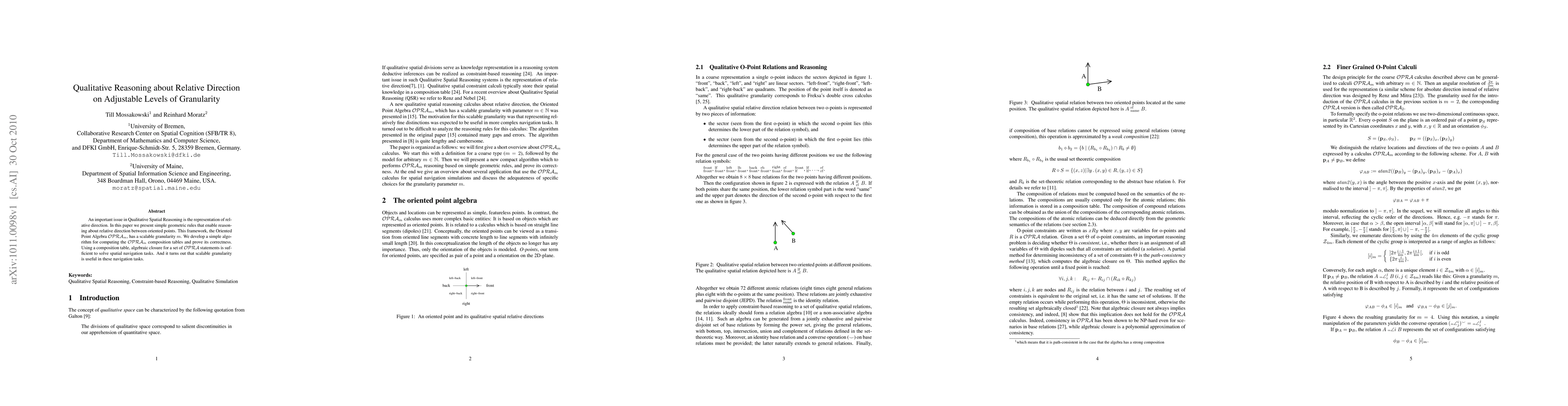 This paper introduces the Oriented Point Algebra (OPRA_m) for qualitative reasoning about relative direction, featuring scalable granularity m. The authors develop an algorithm for computing OPRA_m composition tables and prove its correctness, demonstrating its utility in solving spatial navigation tasks.