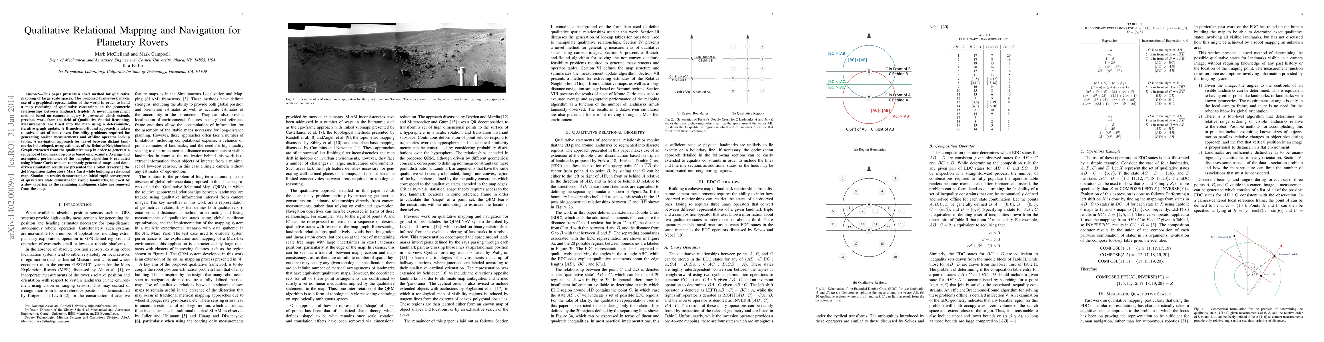 This paper presents a novel method for qualitative mapping of large scale spaces. The proposed framework makes use of a graphical representation of the world in order to build a map consisting of qualitative constraints on the geometric relationships between landmark triplets. A novel measurement method based on camera imagery is presented which extends previous work from the field of Qualitative Spatial Reasoning. Measurements are fused into the map using a deterministic, iterative graph update. A Branch-and-Bound approach is taken to solve a set of non-convex feasibility problems required for generating on-line measurements and off-line operator lookup tables. A navigation approach for travel between distant landmarks is developed, using estimates of the Relative Neighborhood Graph extracted from the qualitative map in order to generate a sequence of landmark objectives based on proximity. Average and asymptotic performance of the mapping algorithm is evaluated using Monte Carlo tests on randomly generated maps, and data-driven simulation results are presented for a robot traversing the Jet Propulsion Laboratory Mars Yard while building a relational map. Simulation results demonstrate an initial rapid convergence of qualitative state estimates for visible landmarks, followed by a slow tapering as the remaining ambiguous states are removed from the map.