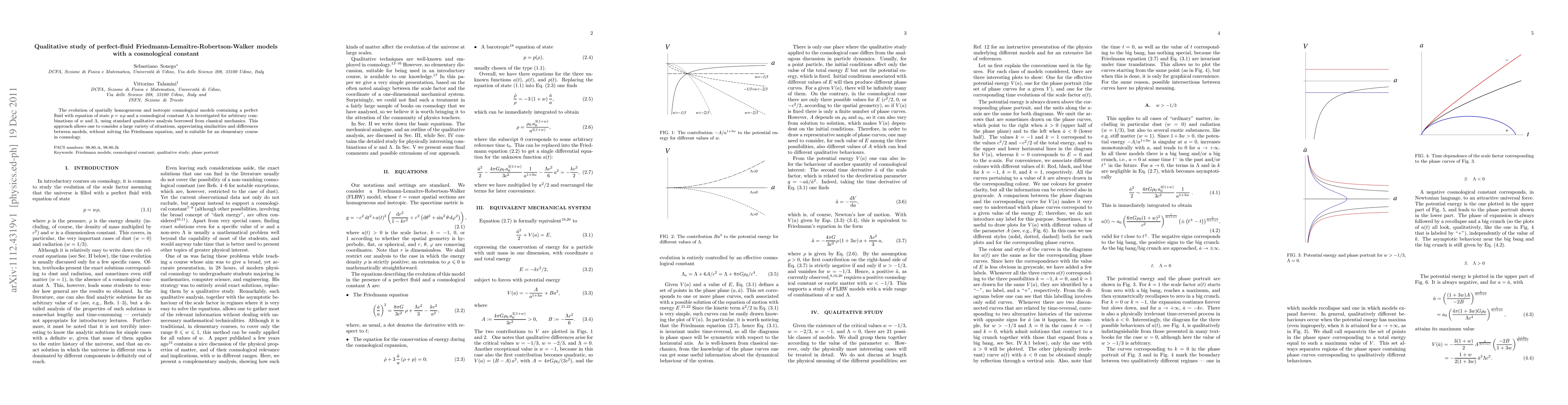 The evolution of spatially homogeneous and isotropic cosmological models containing a perfect fluid with equation of state p=w\rho\ and a cosmological constant \Lambda\ is investigated for arbitrary combinations of w and \Lambda, using standard qualitative analysis borrowed from classical mechanics. This approach allows one to consider a large variety of situations, appreciating similarities and differences between models, without solving the Friedmann equation, and is suitable for an elementary course in cosmology.