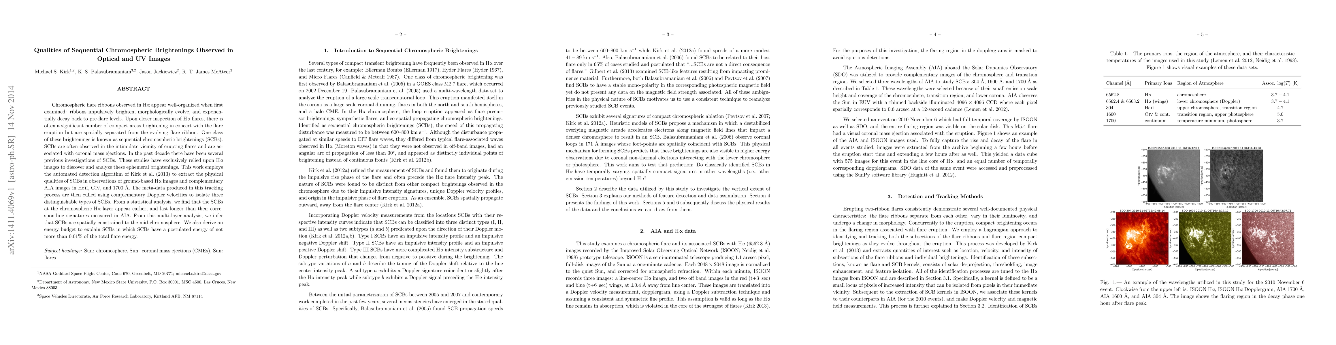 Chromospheric flare ribbons observed in H-alpha appear well-organized when first examined: ribbons impulsively brighten, morphologically evolve, and exponentially decay back to pre-flare levels. Upon closer inspection of H-alpha flares, there is often a significant number of compact areas brightening in concert with the flare eruption but are spatially separated from the evolving flare ribbon. One class of these brightenings is known as sequential chromospheric brightenings (SCBs). SCBs are often observed in the intimidate vicinity of erupting flares and are associated with coronal mass ejections. In the past decade there have been several previous investigations of SCBs. These studies have exclusively relied upon H-alphaimages to discover and analyze these ephemeral brightenings. This work employs the automated detection algorithm of Kirk et al. (2011) to extract the physical qualities of SCBs in observations of ground-based H-alpha images and complementary AIA images in HeII, Civ, and 1700 \AA. The meta-data produced in this tracking process are then culled using complementary Doppler velocities to isolate three distinguishable types of SCBs. From a statistical analysis, we find that the SCBs at the chromospheric H-alpha layer appear earlier, and last longer than their corresponding signatures measured in AIA. From this multi-layer analysis, we infer that SCBs are spatially constrained to the mid-chromosphere. We also derive an energy budget to explain SCBs in which SCBs have a postulated energy of not more than 0.01% of the total flare energy.