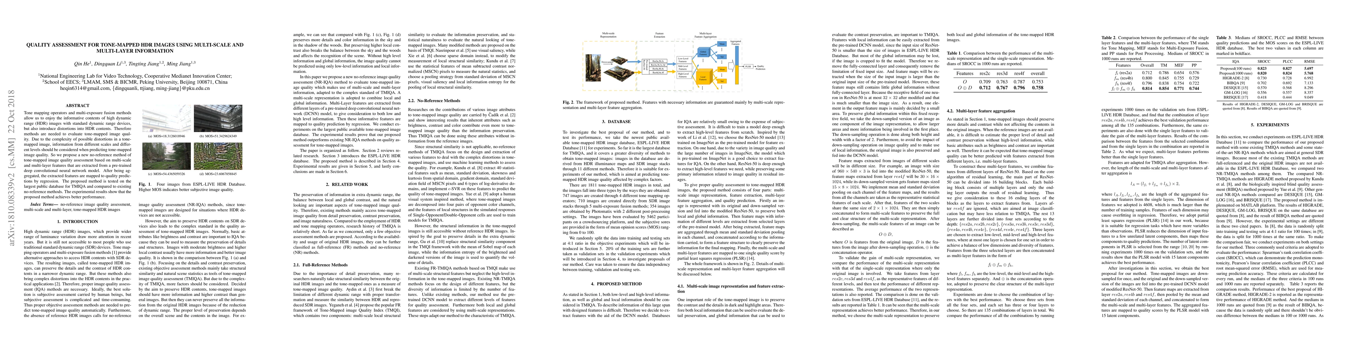 This paper proposes a new no-reference method for assessing the quality of tone-mapped high dynamic range (HDR) images using multi-scale and multi-layer features extracted from a deep convolutional neural network. The method outperforms existing no-reference methods, as demonstrated through testing on a large public database.