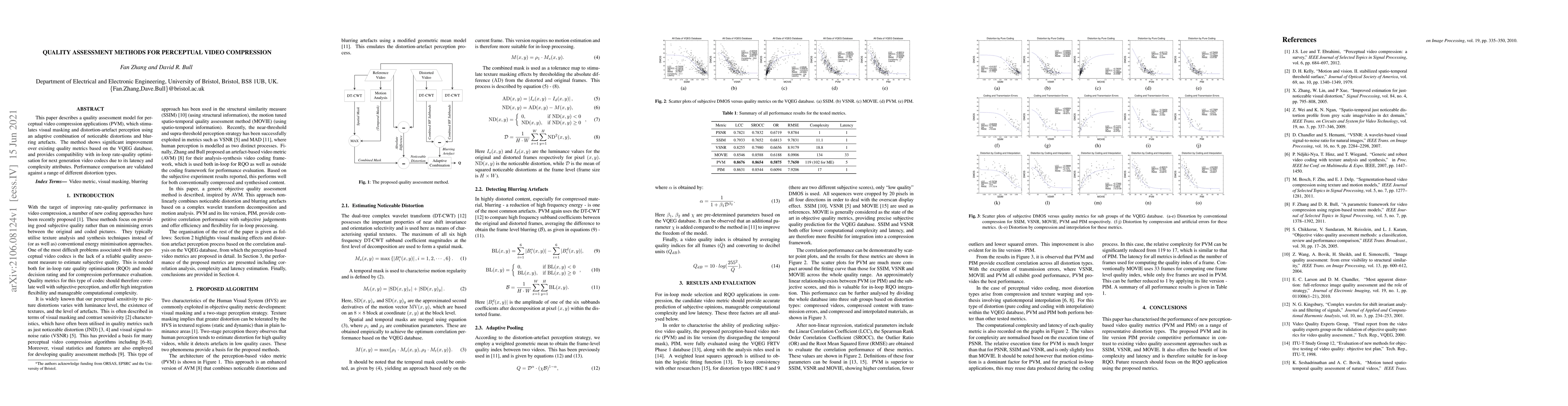 This paper proposes a perceptual quality assessment model for video compression that effectively measures visual masking and distortion artefacts, outperforming existing metrics. It supports in-loop rate-quality optimization for next-gen codecs, validated through performance comparisons across various distortion types.