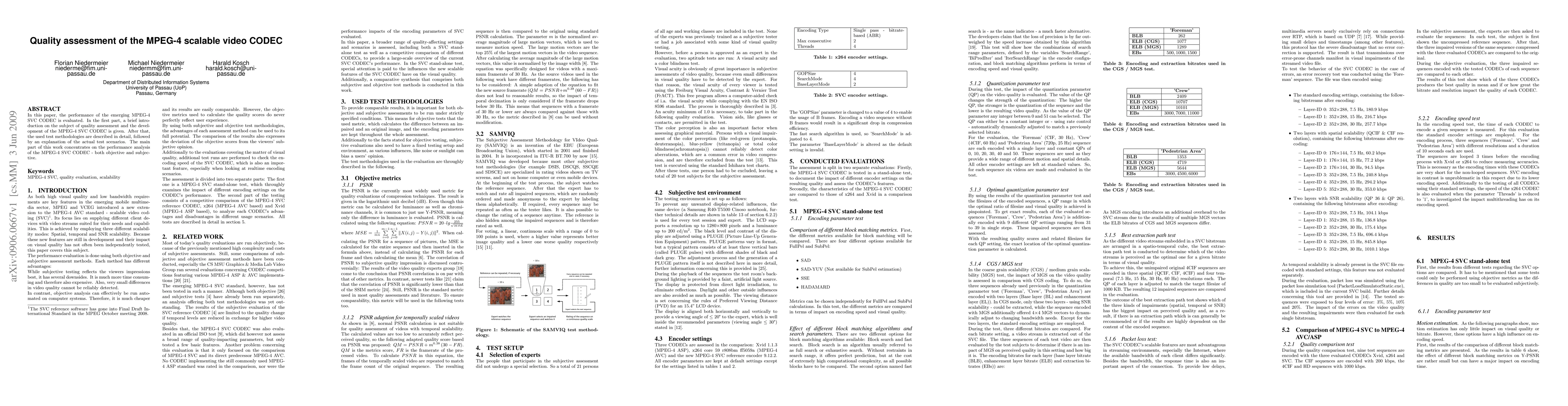 In this paper, the performance of the emerging MPEG-4 SVC CODEC is evaluated. In the first part, a brief introduction on the subject of quality assessment and the development of the MPEG-4 SVC CODEC is given. After that, the used test methodologies are described in detail, followed by an explanation of the actual test scenarios. The main part of this work concentrates on the performance analysis of the MPEG-4 SVC CODEC - both objective and subjective.
