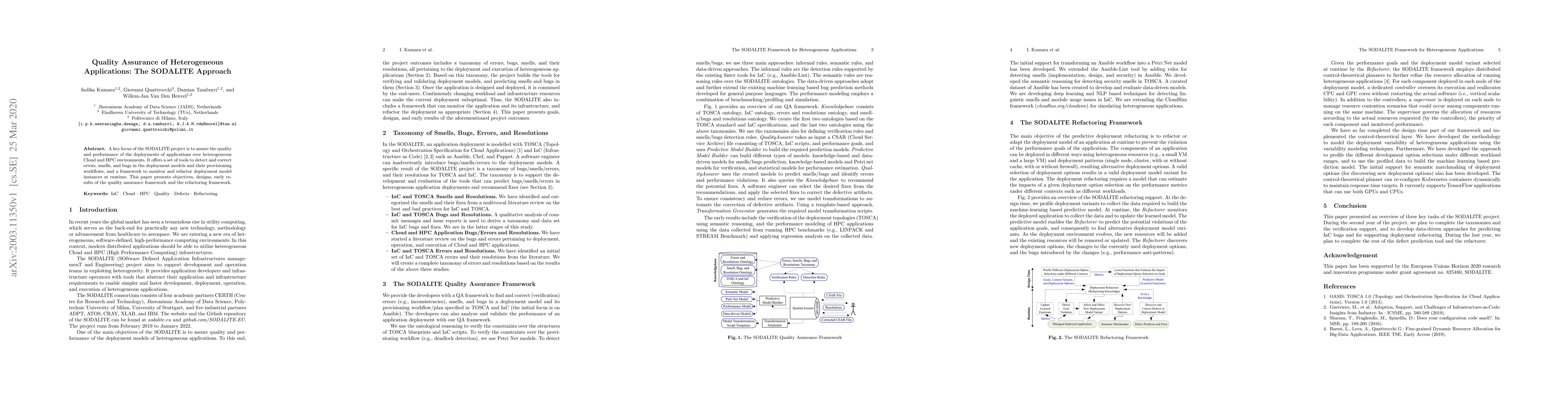A key focus of the SODALITE project is to assure the quality and performance of the deployments of applications over heterogeneous Cloud and HPC environments. It offers a set of tools to detect and correct errors, smells, and bugs in the deployment models and their provisioning workflows, and a framework to monitor and refactor deployment model instances at runtime. This paper presents objectives, designs, early results of the quality assurance framework and the refactoring framework.