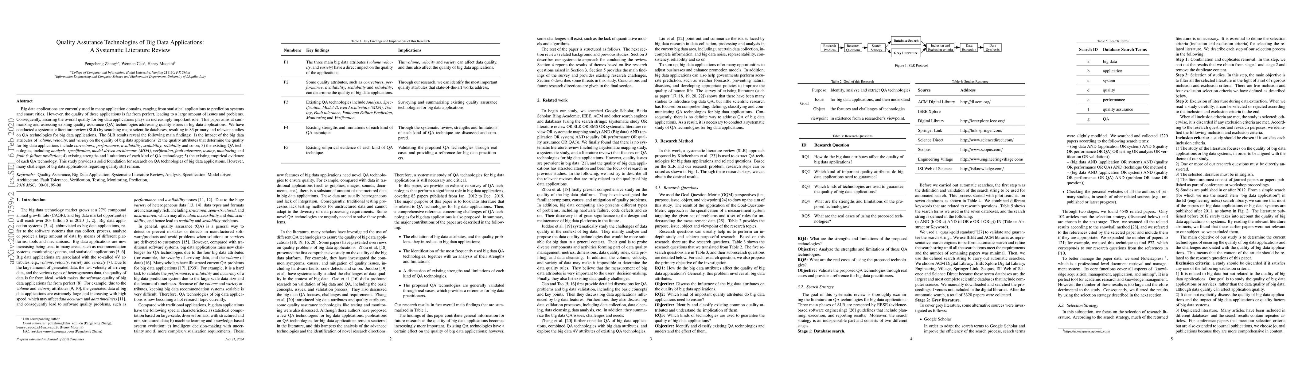 This research provides a solid foundation for future studies on QA technologies of big data applications, identifying existing strengths, limitations, and empirical evidence of each QA technology.