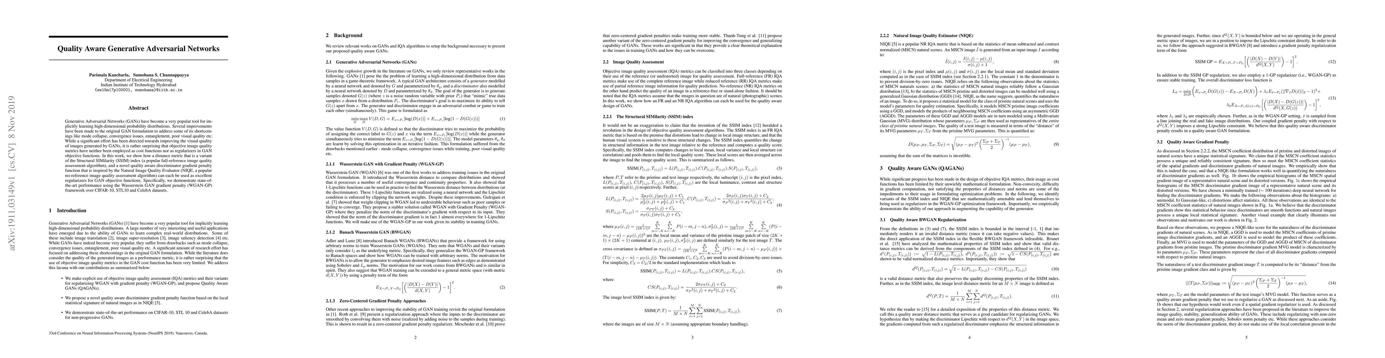 This paper improves Generative Adversarial Networks (GANs) by incorporating image quality metrics as regularizers, achieving state-of-the-art performance on datasets like CIFAR-10 and CelebA.