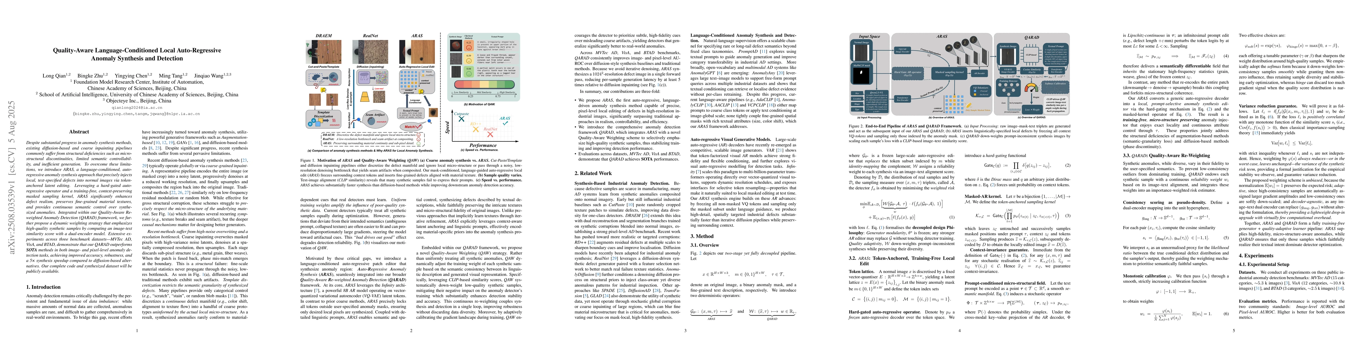 Despite substantial progress in anomaly synthesis methods, existing diffusion-based and coarse inpainting pipelines commonly suffer from structural deficiencies such as micro-structural discontinuities, limited semantic controllability, and inefficient generation. To overcome these limitations, we introduce ARAS, a language-conditioned, auto-regressive anomaly synthesis approach that precisely injects local, text-specified defects into normal images via token-anchored latent editing. Leveraging a hard-gated auto-regressive operator and a training-free, context-preserving masked sampling kernel, ARAS significantly enhances defect realism, preserves fine-grained material textures, and provides continuous semantic control over synthesized anomalies. Integrated within our Quality-Aware Re-weighted Anomaly Detection (QARAD) framework, we further propose a dynamic weighting strategy that emphasizes high-quality synthetic samples by computing an image-text similarity score with a dual-encoder model. Extensive experiments across three benchmark datasets-MVTec AD, VisA, and BTAD, demonstrate that our QARAD outperforms SOTA methods in both image- and pixel-level anomaly detection tasks, achieving improved accuracy, robustness, and a 5 times synthesis speedup compared to diffusion-based alternatives. Our complete code and synthesized dataset will be publicly available.