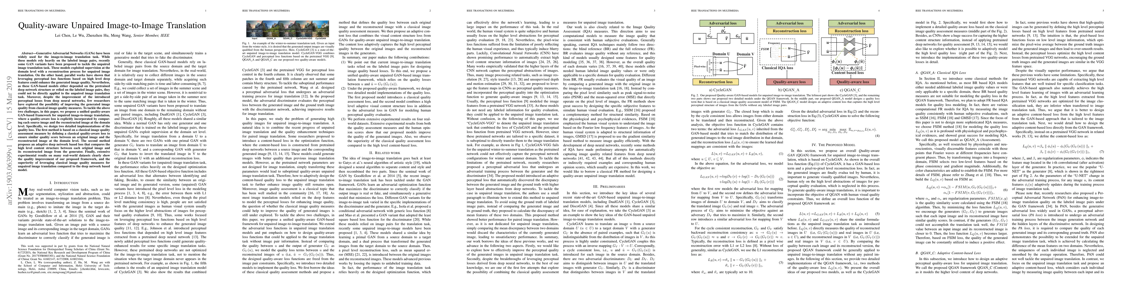 This paper proposes a unified quality-aware GAN framework for unpaired image-to-image translation, incorporating a quality-aware loss to improve generated image quality. It introduces two quality loss methods: a classical measure and an adaptive deep network-based loss, demonstrating superior performance over deep network-based models in extensive experiments.