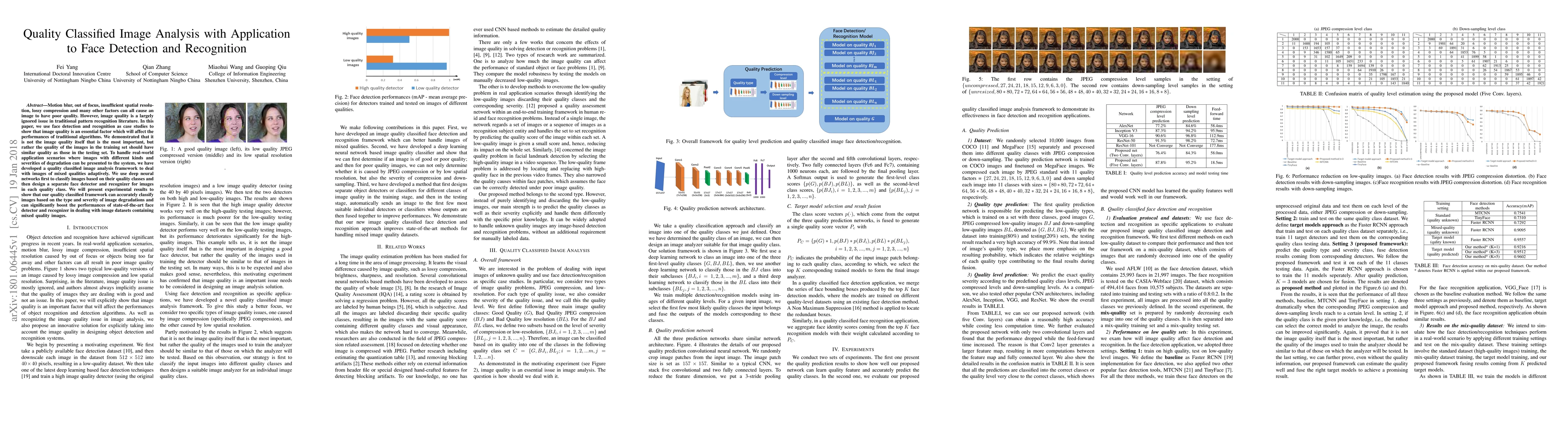 This paper investigates the impact of image quality on face detection and recognition, emphasizing that training and testing images should match in quality. It proposes a quality classified image analysis framework using deep neural networks to classify images by quality and apply tailored detectors and recognizers, significantly improving performance on mixed-quality datasets.