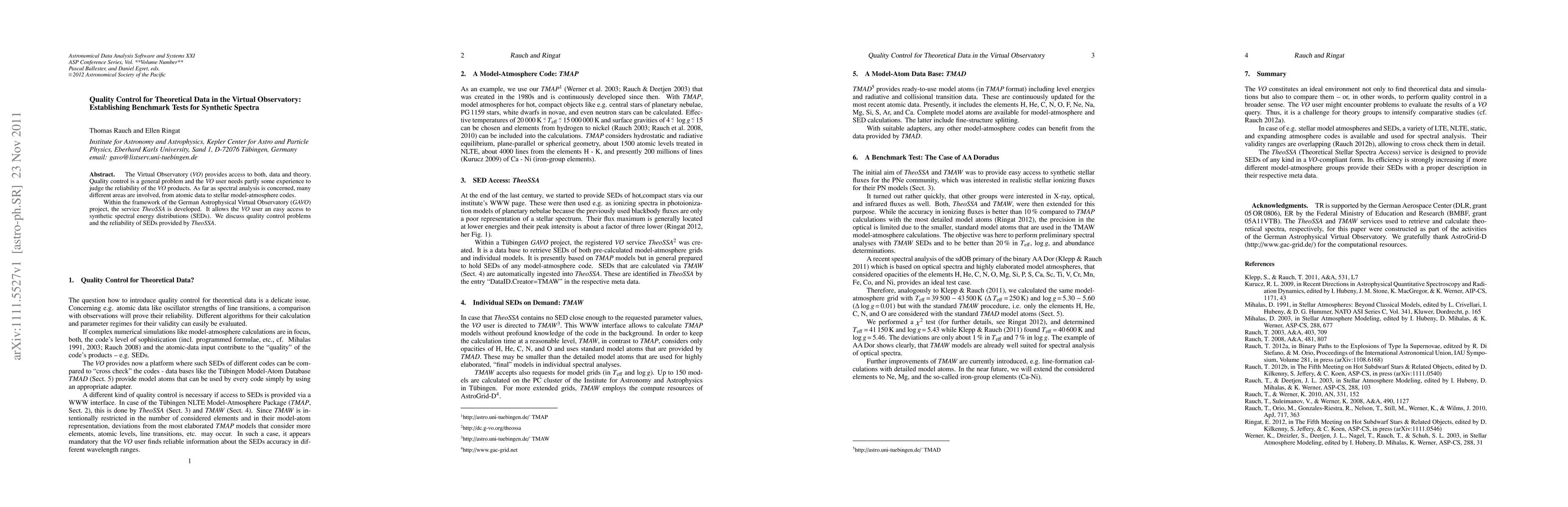 This paper discusses quality control for synthetic spectra within the German Astrophysical Virtual Observatory (GAVO) project, focusing on the reliability of spectral energy distributions (SEDs) provided by the TheoSSA service. It addresses the challenges of assessing the accuracy of theoretical data in the Virtual Observatory.