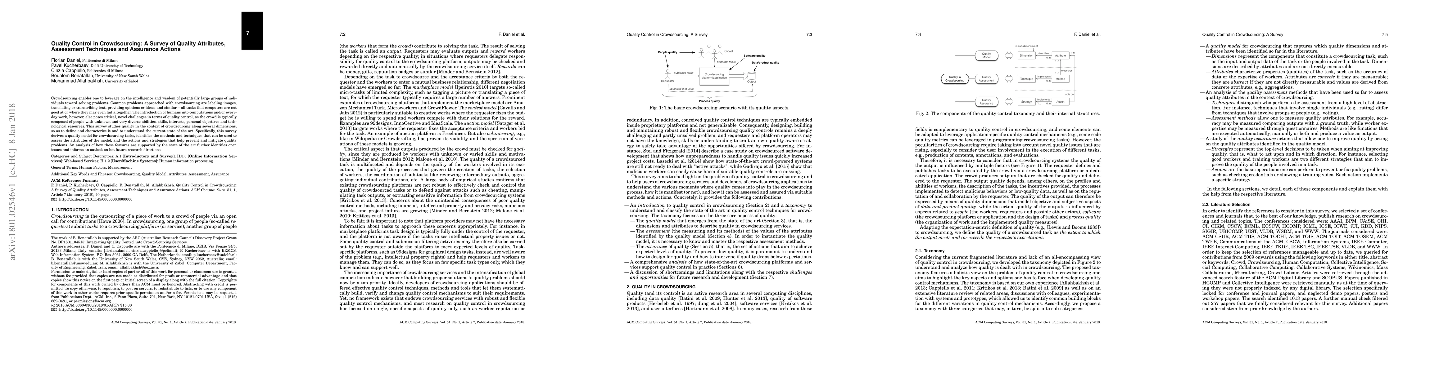 A survey of quality control in crowdsourcing identifies a quality model, assessment techniques, and assurance actions to prevent quality problems. The study informs future research directions on hot topics in the field of crowdsourcing.