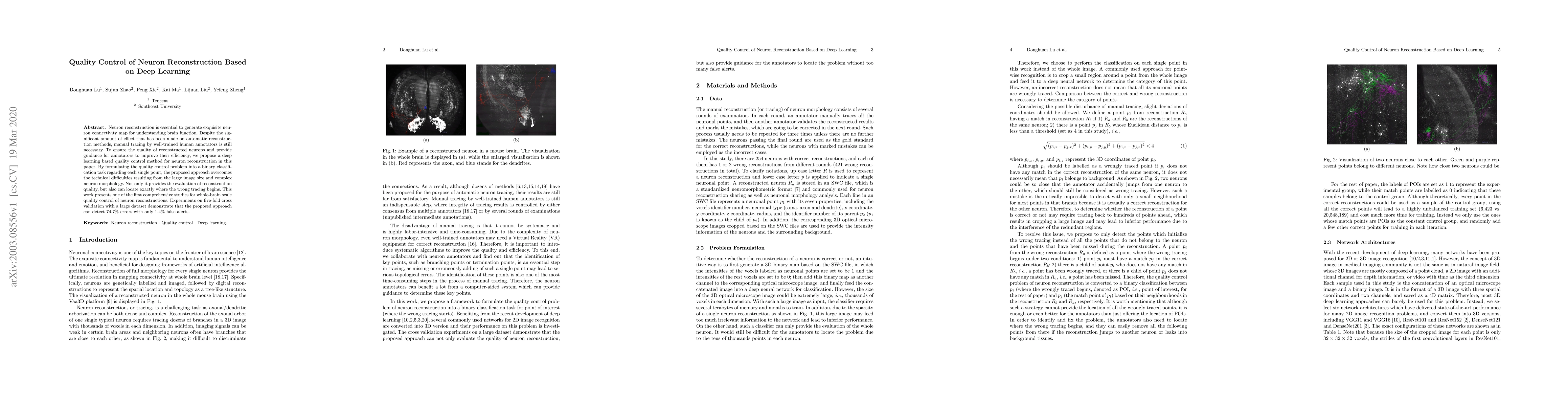 A deep learning approach is proposed to improve the quality of neuron reconstructions by detecting errors in tracing and locating wrong tracing starts, with a detection accuracy of 74.7%.