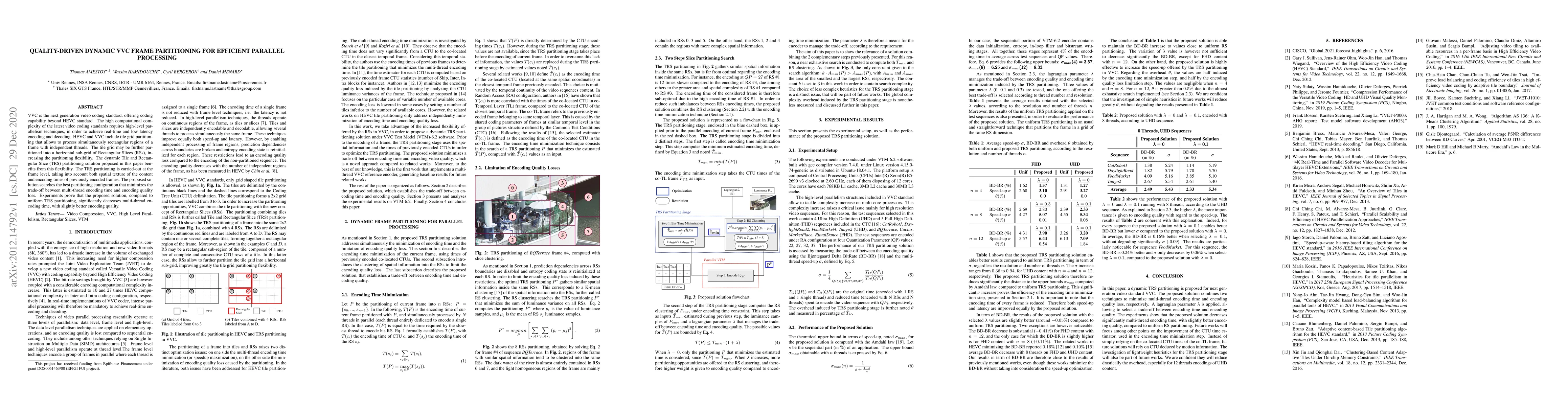 This paper proposes a dynamic VVC frame partitioning method to enhance parallel processing efficiency, balancing multi-thread encoding time and quality loss. The method dynamically partitions tiles and rectangular slices based on content texture and previous encoding times, achieving lower encoding time with slightly better quality compared to uniform partitioning.