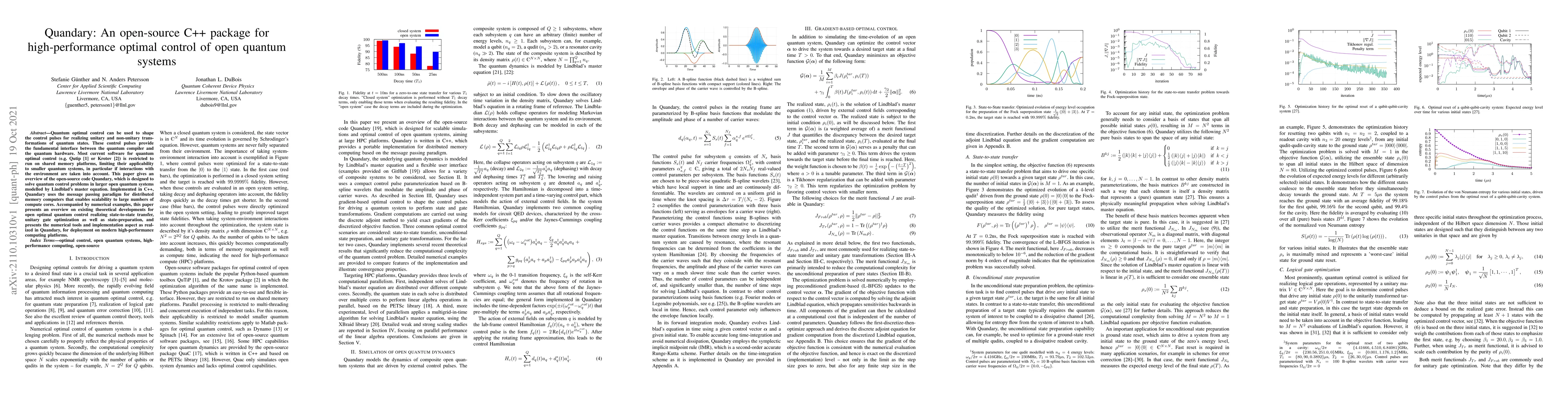 Quandary is an open-source C++ package designed for high-performance optimal control of large open quantum systems, utilizing distributed memory computing to scale to many cores. It implements theoretical developments for quantum control, including state-to-state transfer and unitary gate optimization, and is demonstrated with numerical examples.