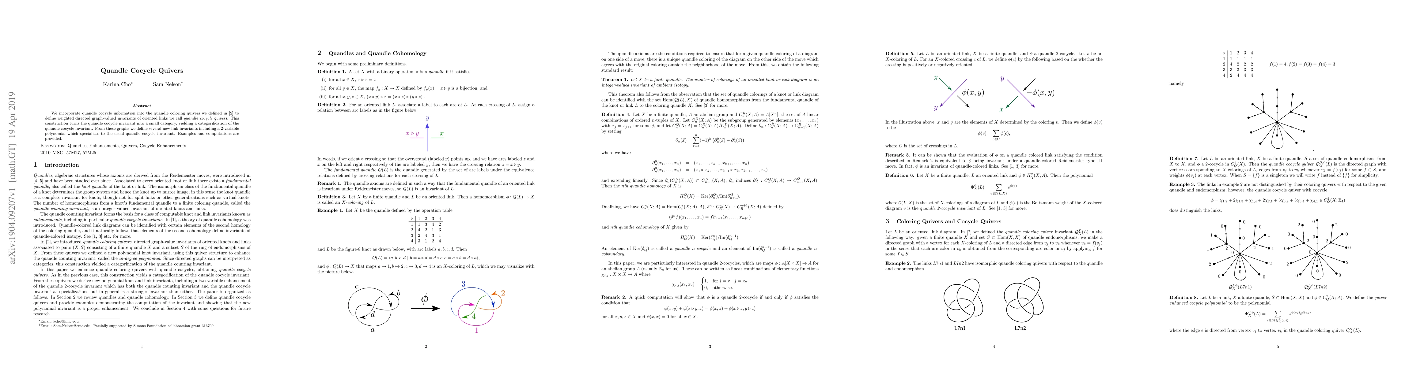 This paper introduces quandle cocycle quivers, which incorporate quandle cocycle information into quandle coloring quivers to define weighted directed graph-valued invariants of oriented links. The construction categorifies the quandle cocycle invariant and yields new link invariants, including a 2-variable polynomial.