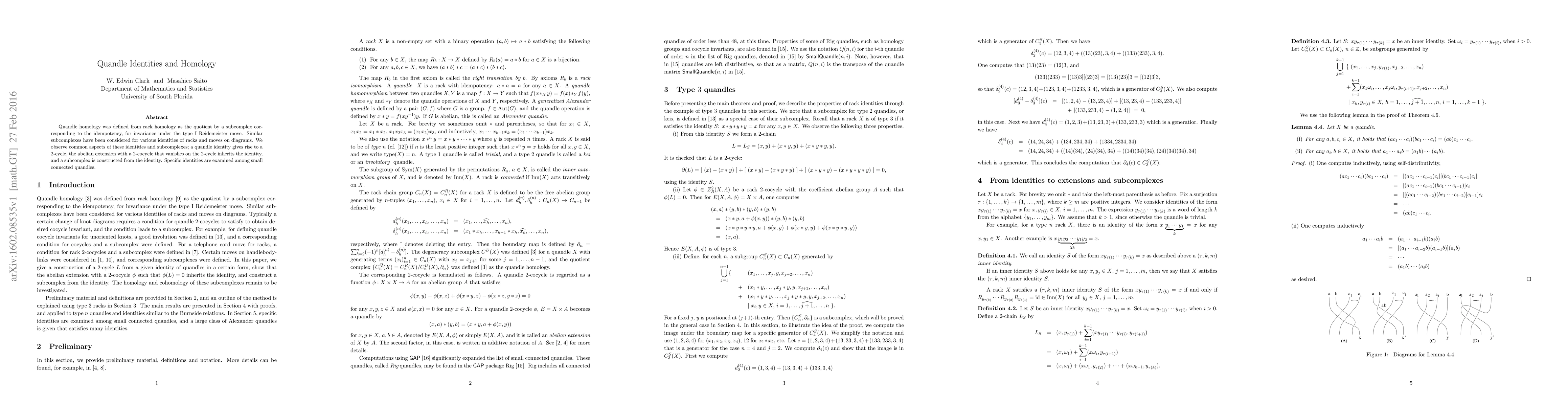 Quandle homology was defined from rack homology as the quotient by a subcomplex corresponding to the idempotency, for invariance under the type I Reidemeister move. Similar subcomplexes have been considered for various identities of racks and moves on diagrams. We observe common aspects of these identities and subcomplexes; a quandle identity gives rise to a $2$-cycle, the abelian extension with a $2$-cocycle that vanishes on the $2$-cycle inherits the identity, and a subcomplex is constructed from the identity. Specific identities are examined among small connected quandles.