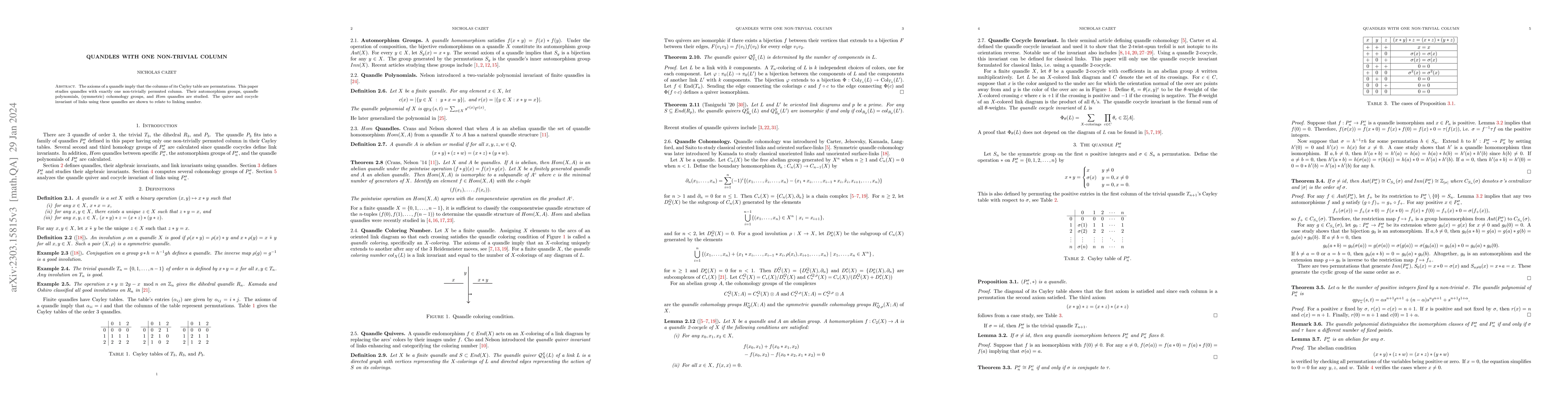 This paper investigates quandles with a single non-trivially permuted column, examining their automorphism groups, quandle polynomials, and cohomology groups. It also explores the quiver and cocycle invariant of links, demonstrating a connection to the linking number.